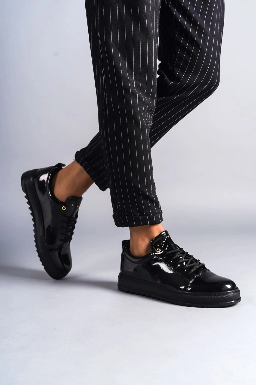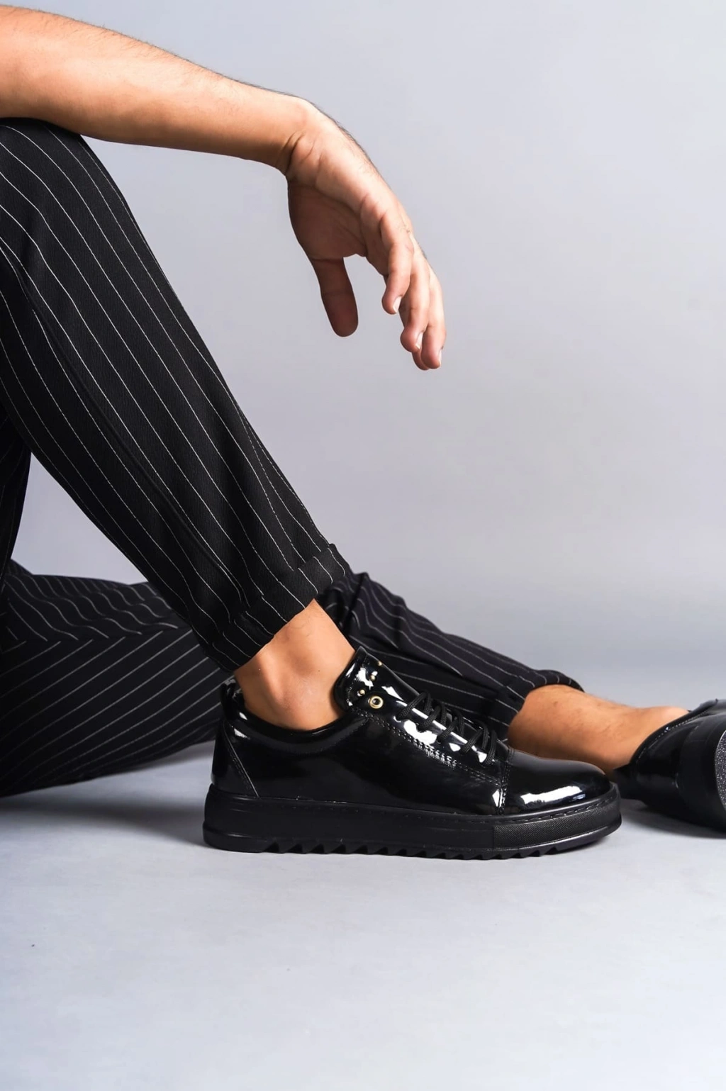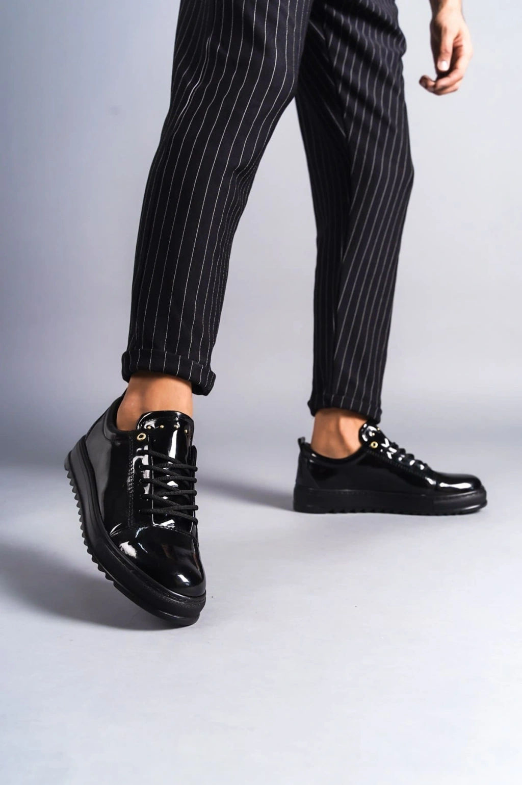 SLW152 Cool Bağcıklı Rugan Erkek Günlük Spor Klasik Ayakkabı RST - Siyah