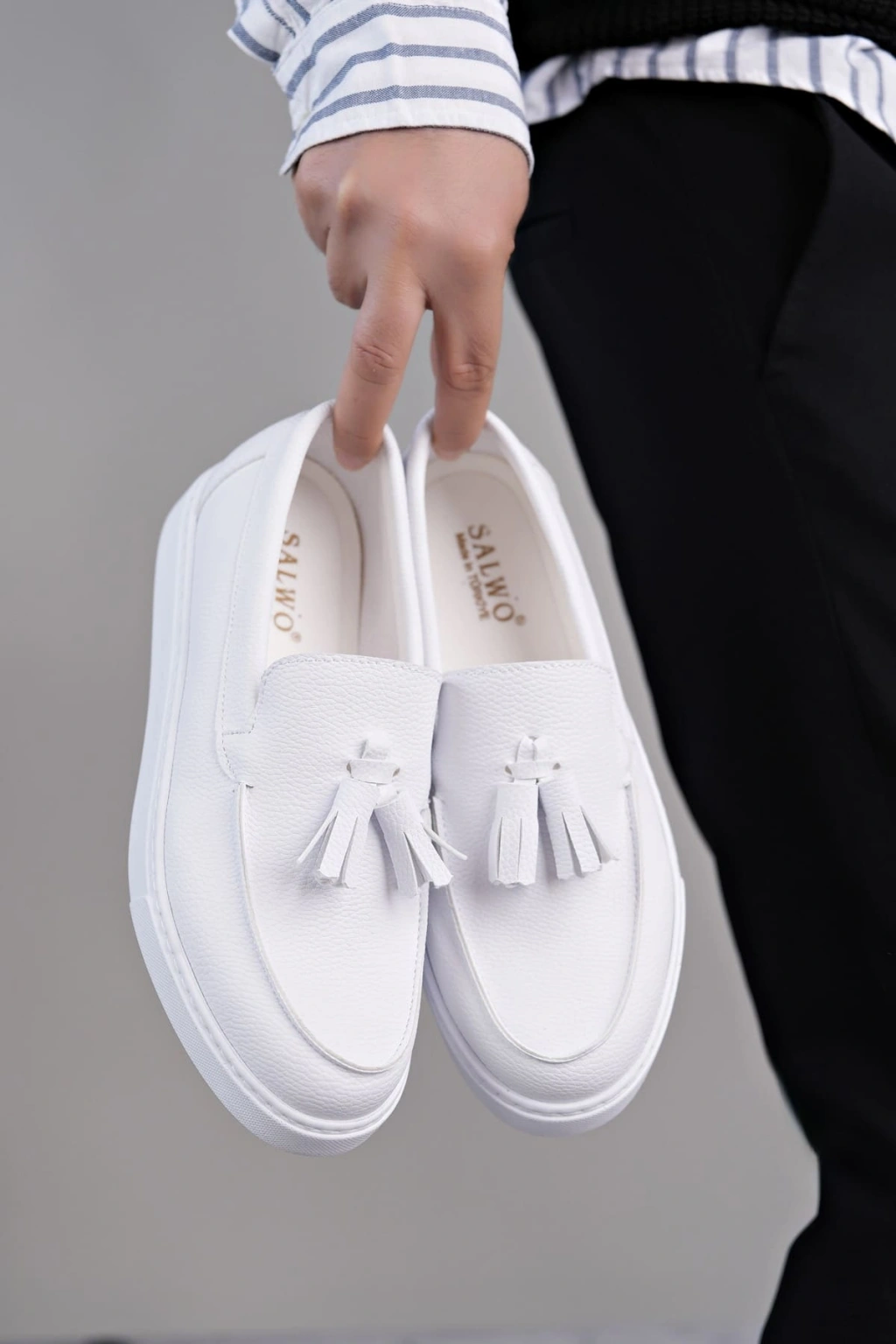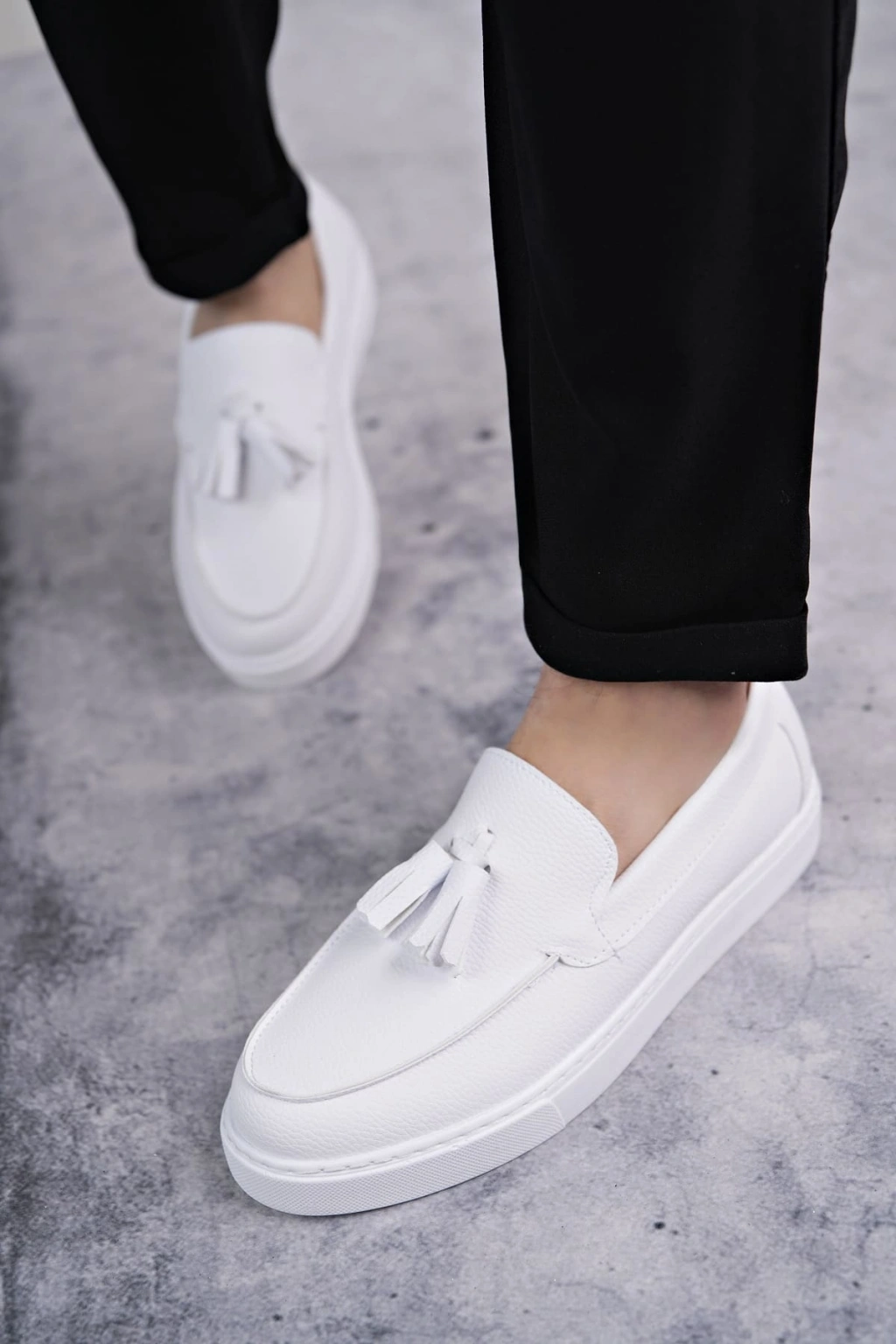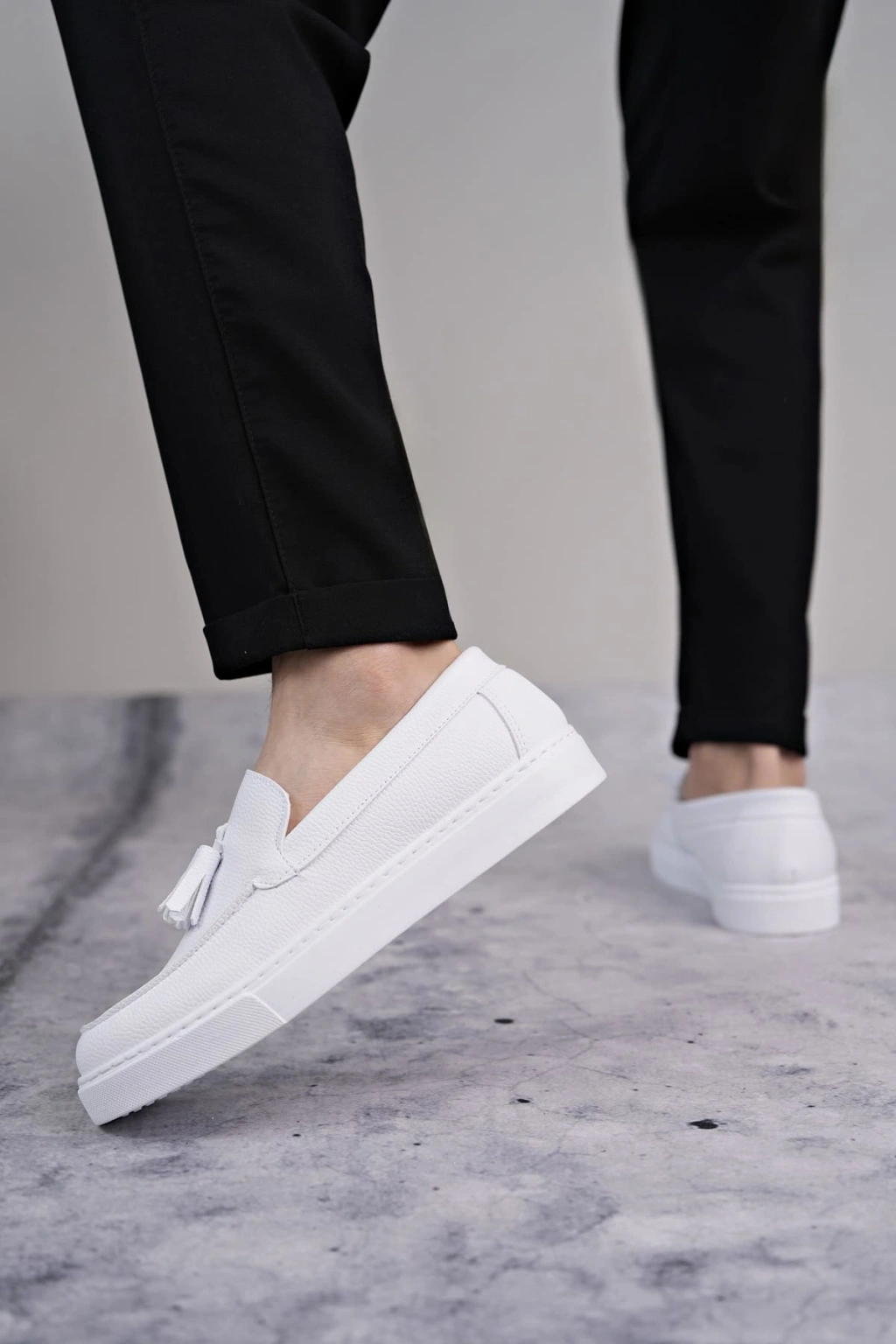 SLW153 Bloom Bağcıksız Püsküllü Cilt Erkek Günlük Spor Klasik Ayakkabı CBT - Beyaz