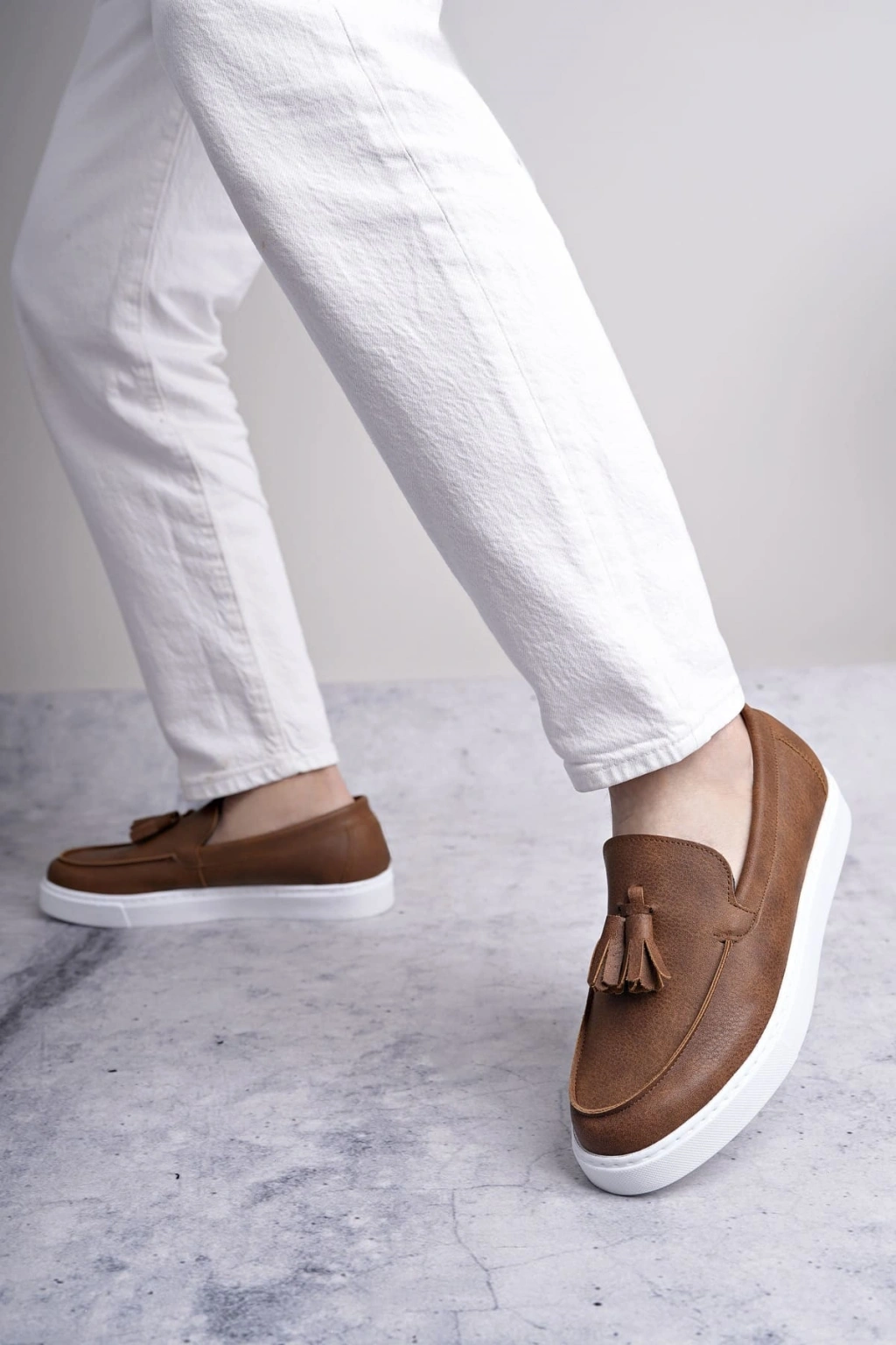 SLW153 Bloom Bağcıksız Püsküllü Cilt Erkek Günlük Spor Klasik Ayakkabı CBT - Taba