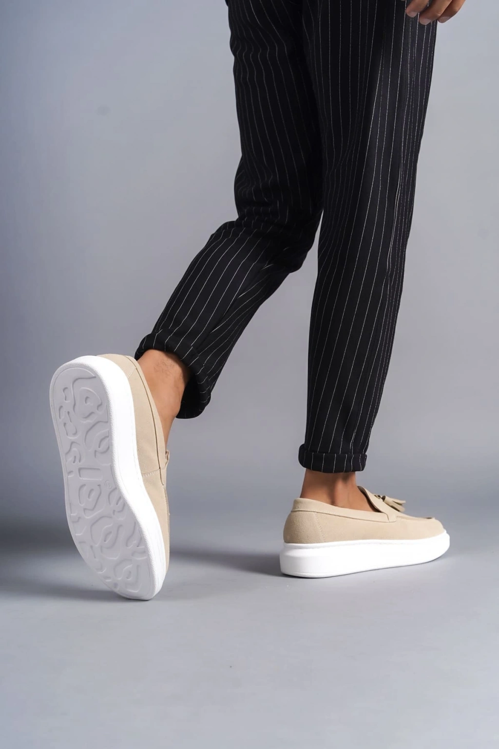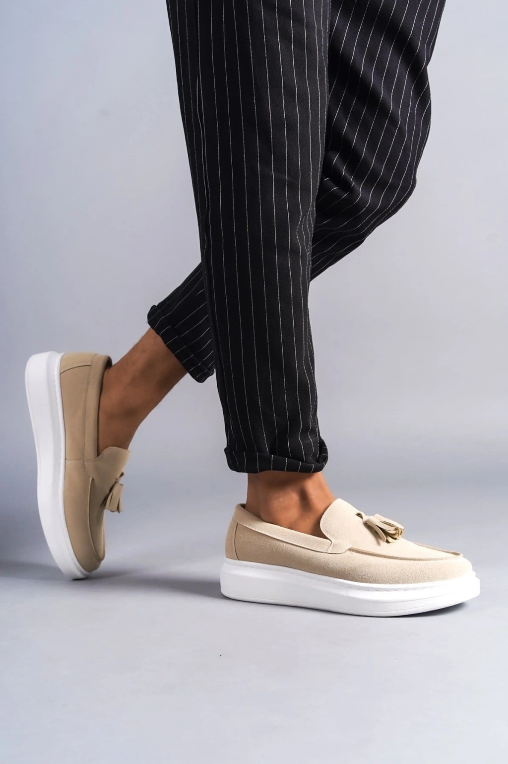 SLW154 Blaze Bağcıksız Püsküllü Süet Erkek Günlük Spor Klasik Ayakkabı SBT - Krem