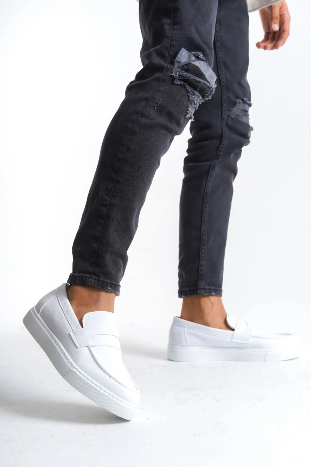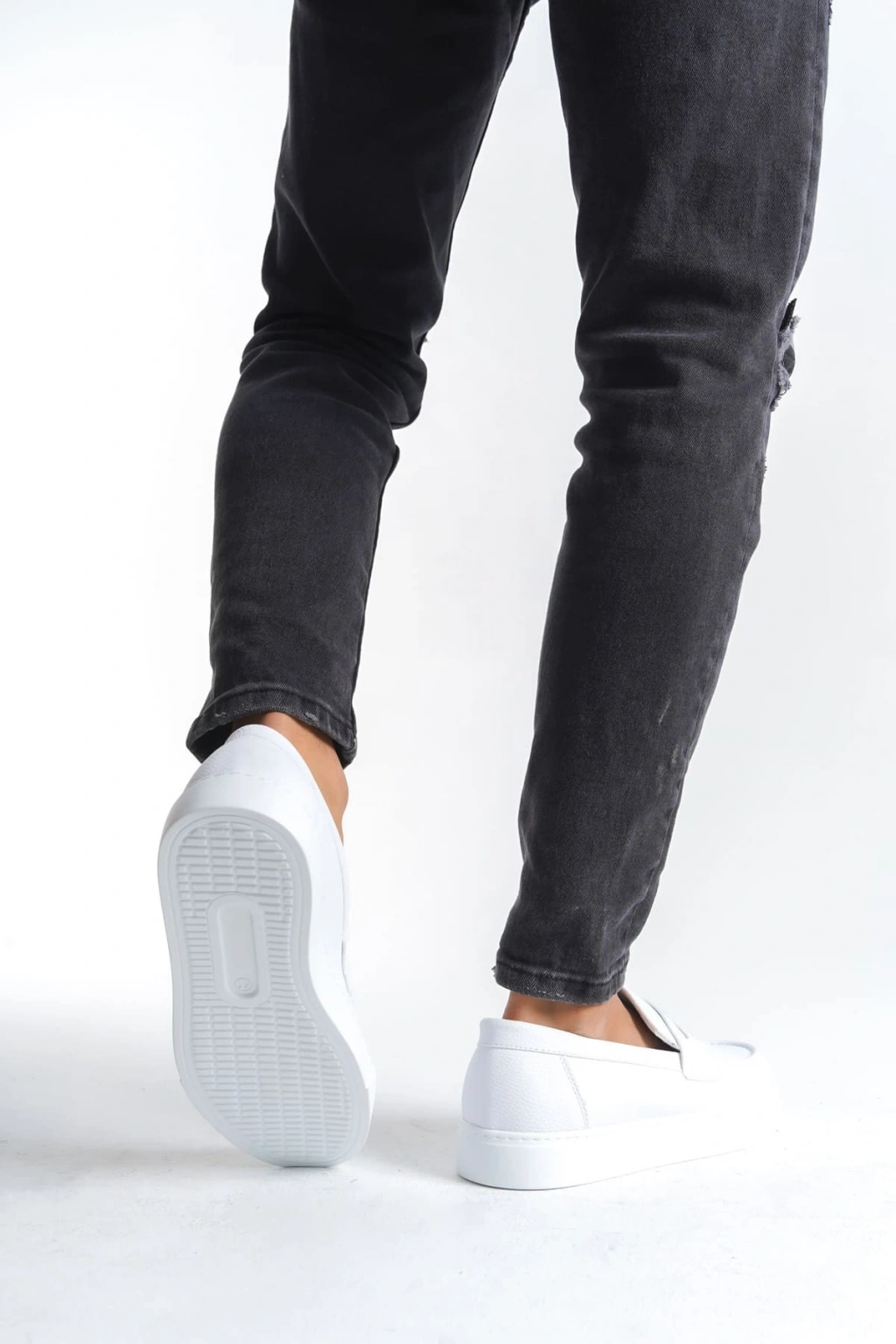 SLW180 Estilo X Bağcıksız Cilt Erkek Günlük Spor Klasik Ayakkabı CBT - Beyaz