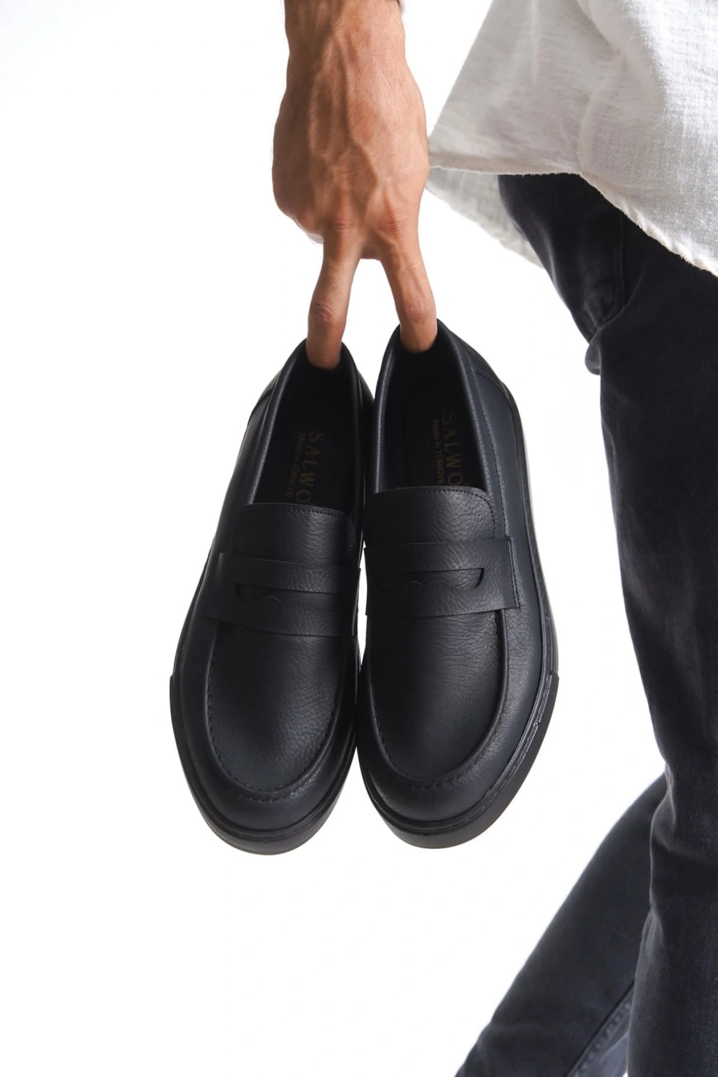 SLW180 Estilo X Bağcıksız Cilt Erkek Günlük Spor Klasik Ayakkabı CST - Siyah