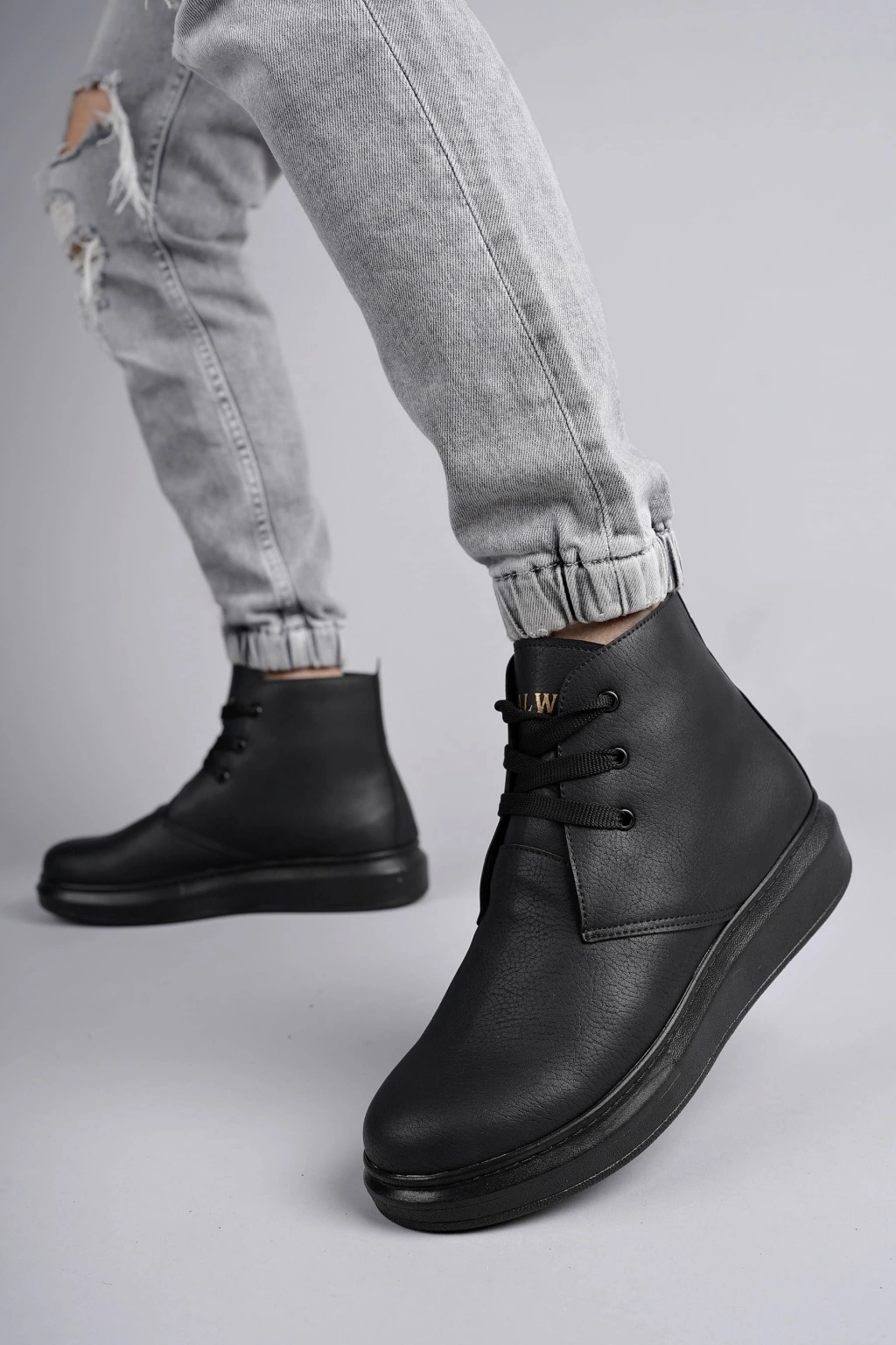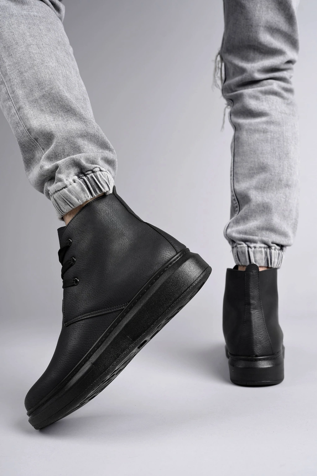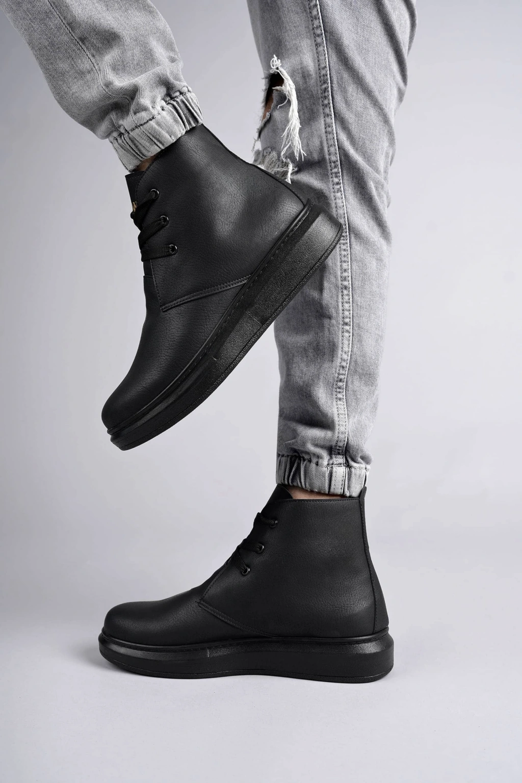 SLW207 Oslo Bağcıklı Cilt Erkek Günlük Spor Bot ST - Siyah