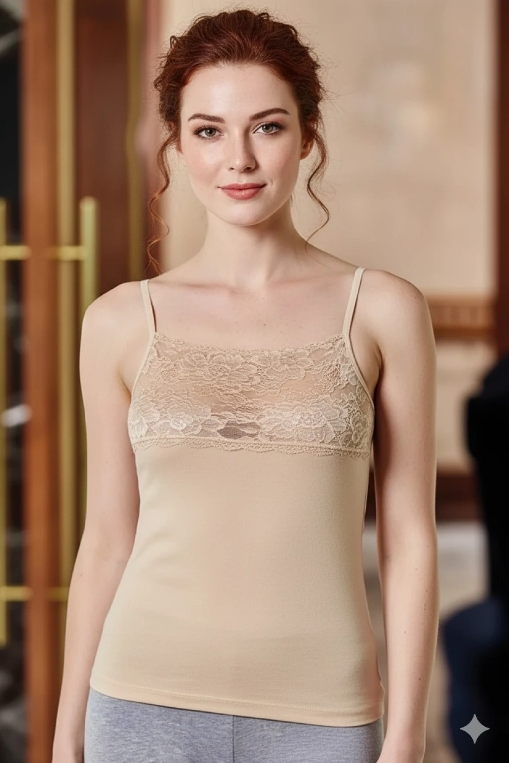 BERRAK markasının, şıklık ve rahatlığı bir arada sunan 2046 model Kadın Dantelli İp Askılı Atlet'iyle gardırobunuza şıklık katmaya hazır olun!