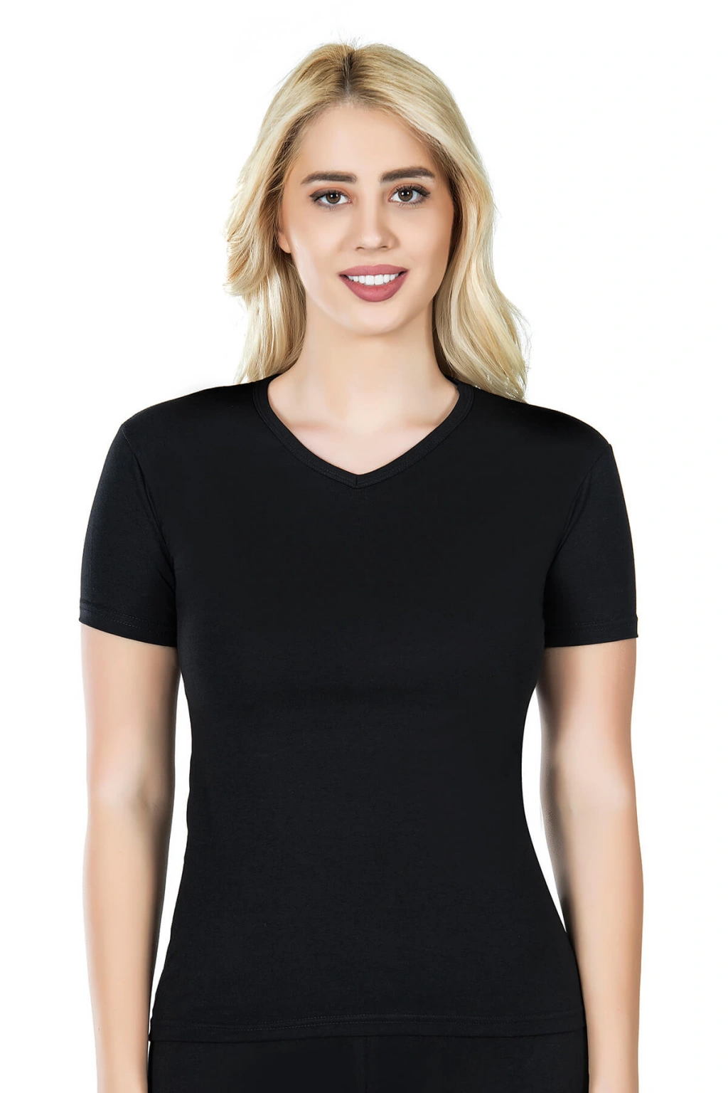 Derya Kurşun Yarım Kol V Yaka Kadın Tişört 227