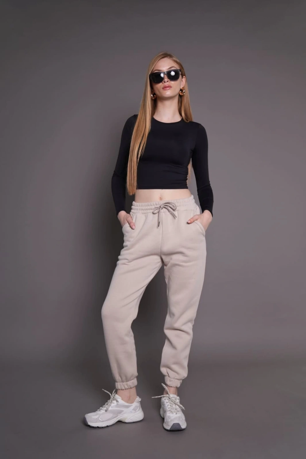Jogger 3 İplik Şardonlu Cepli Tek Alt/Sütlü Kahve/S