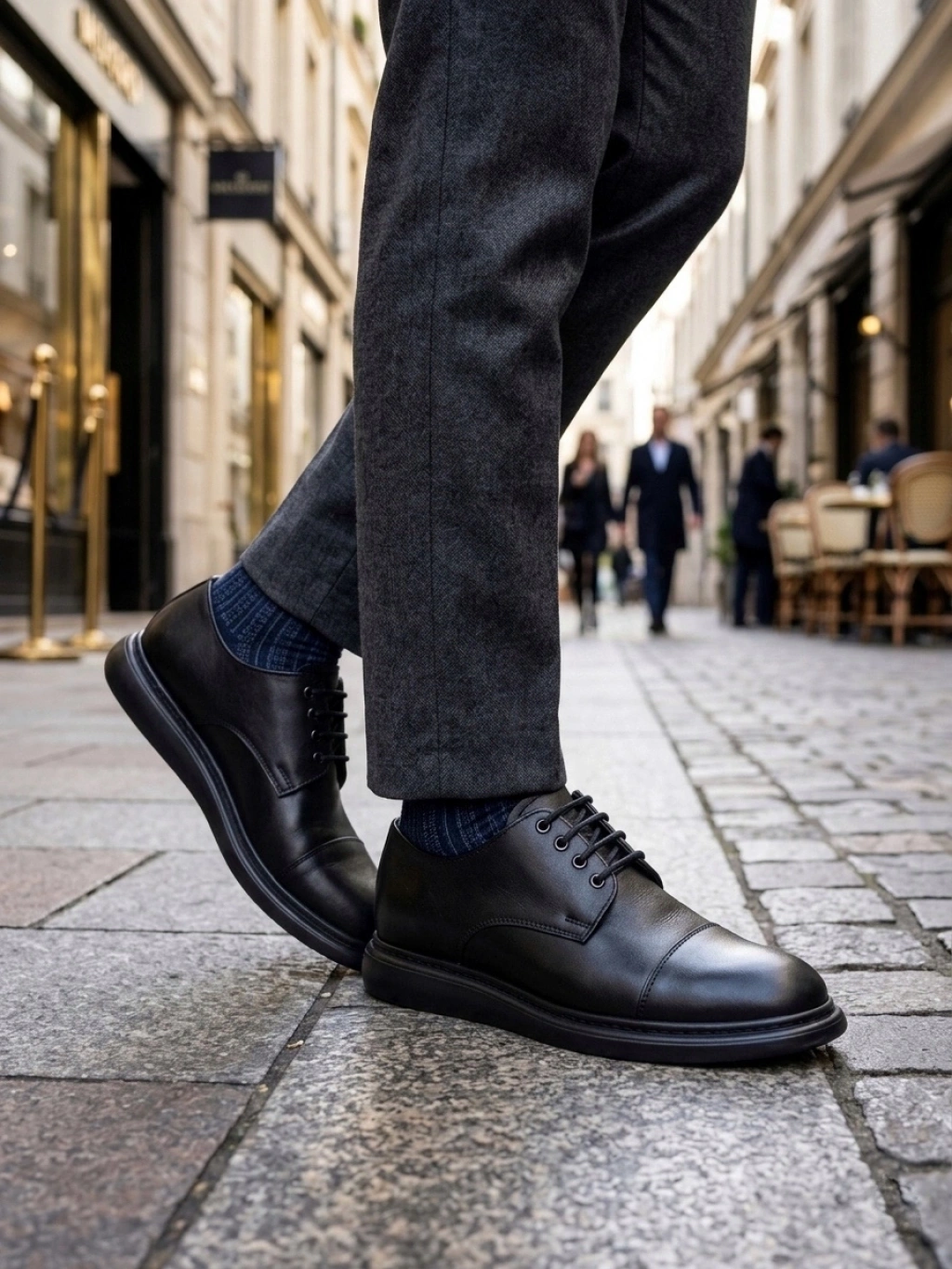 BA0003 Siyah Kapaklı Burun Bağcıklı Erkek Oxford Ayakkabı