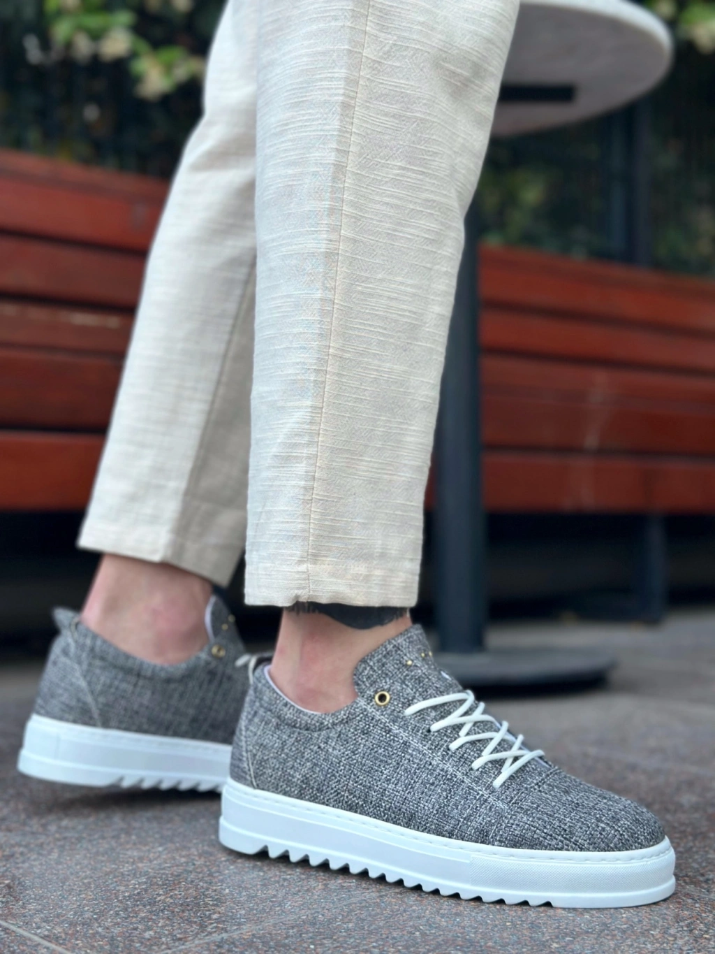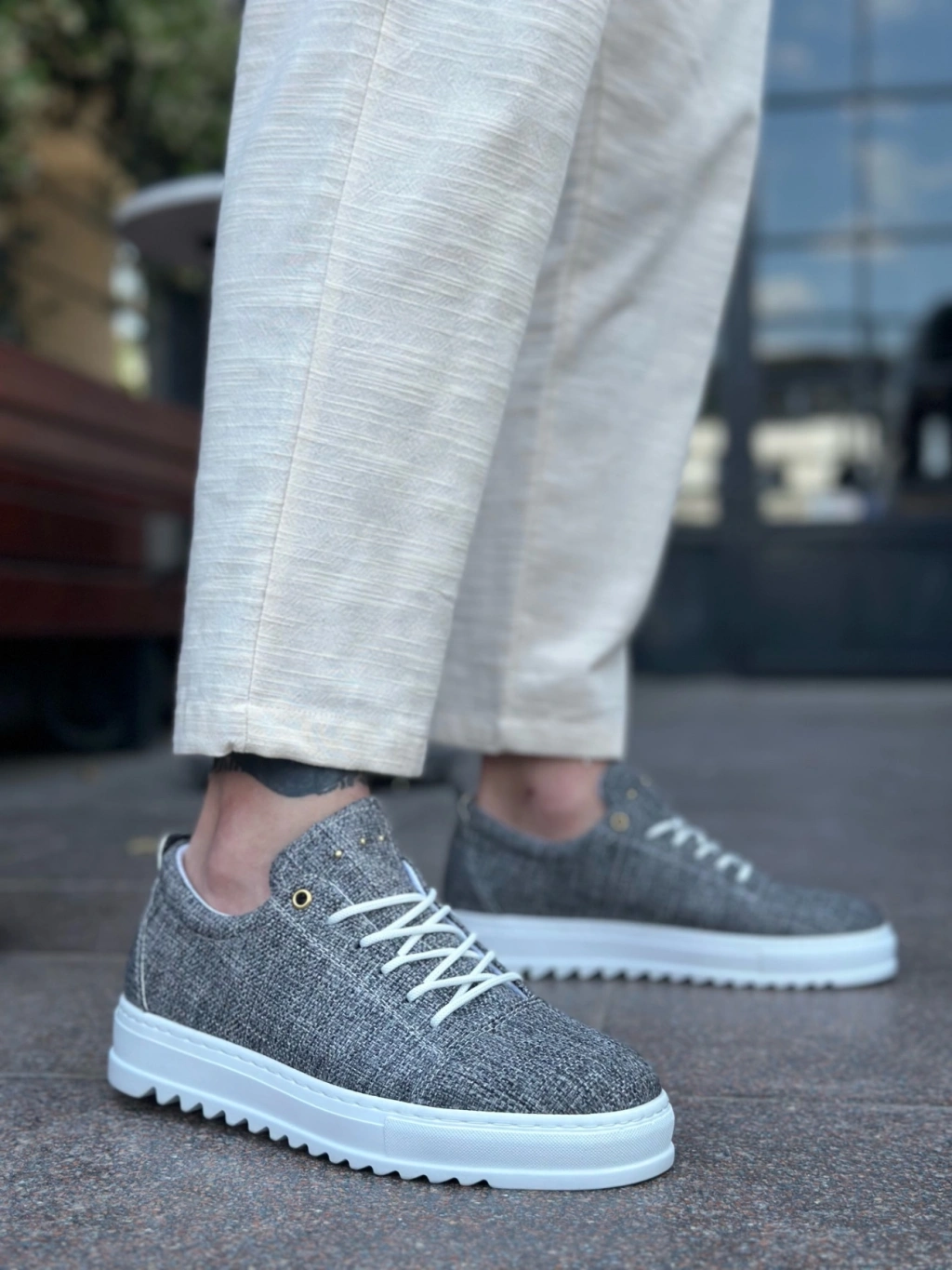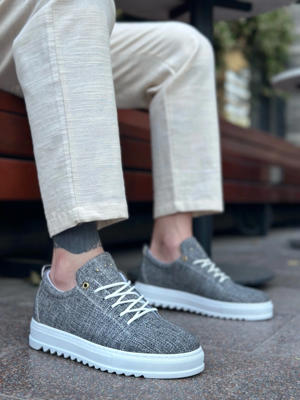 BA0152 Bağcıklı Yüksek Taban Gri Kırçıllı Keten Erkek Ayakkabı
