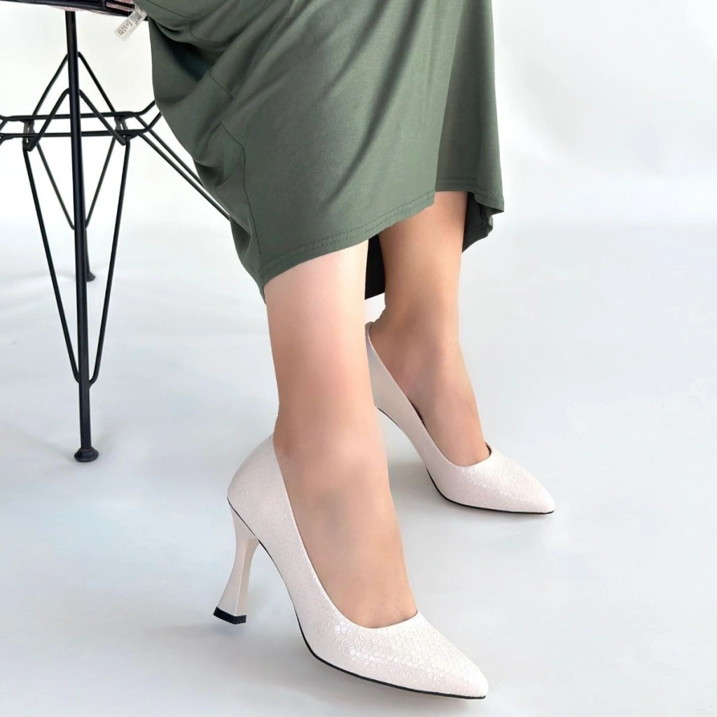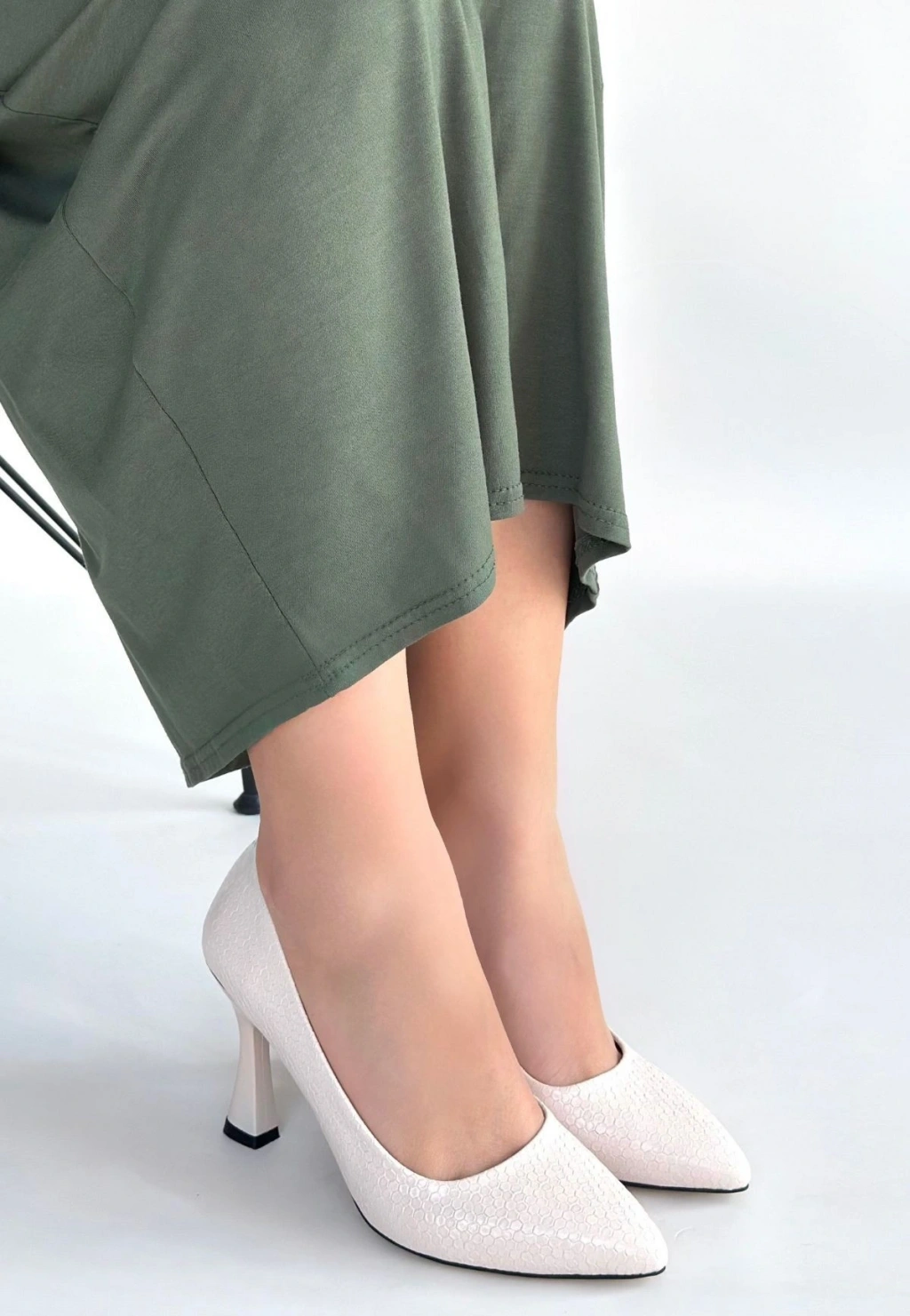 Merio Bej Baskılı Rugan Topuklu Ayakkabı