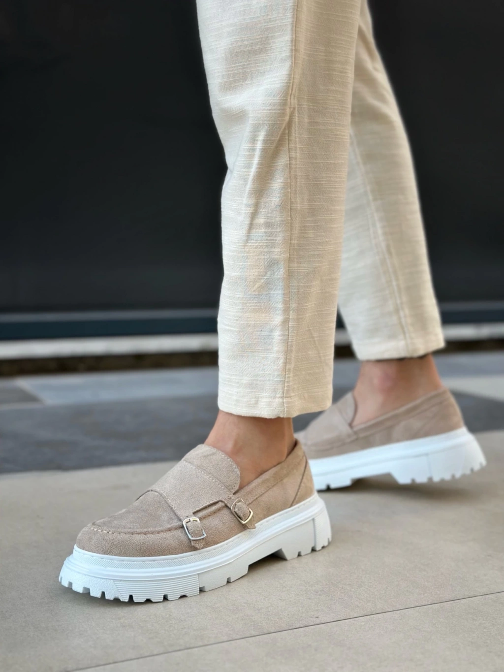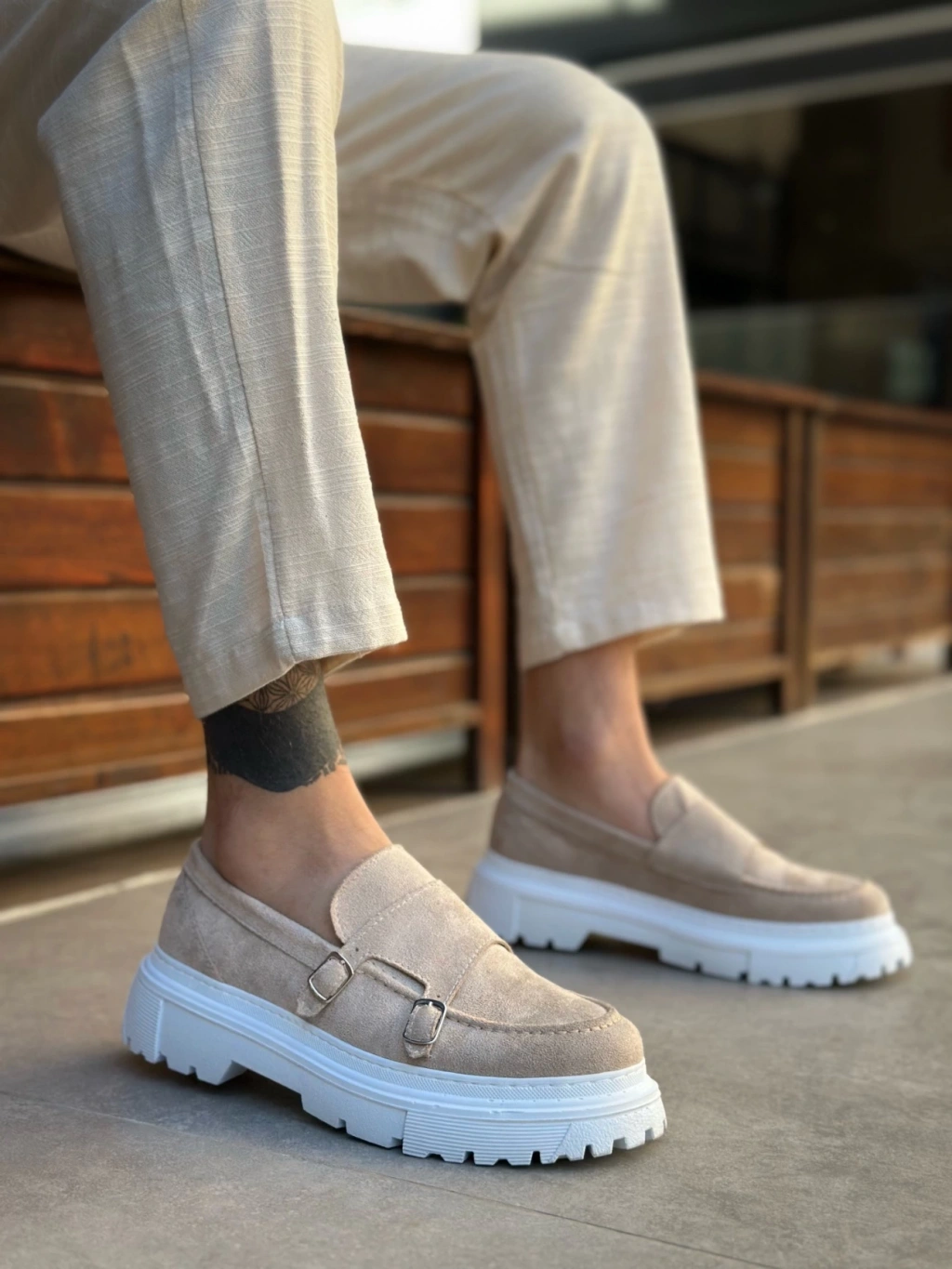 BA0242 Tokalı Klasik Yüksek Taban Krem Süet Erkek Ayakkabı