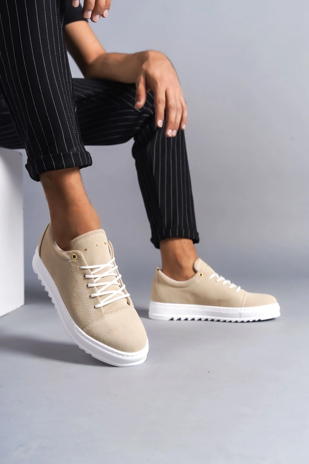 SLW152 Cool Bağcıklı Süet Erkek Günlük Spor Klasik Ayakkabı SBT - Krem