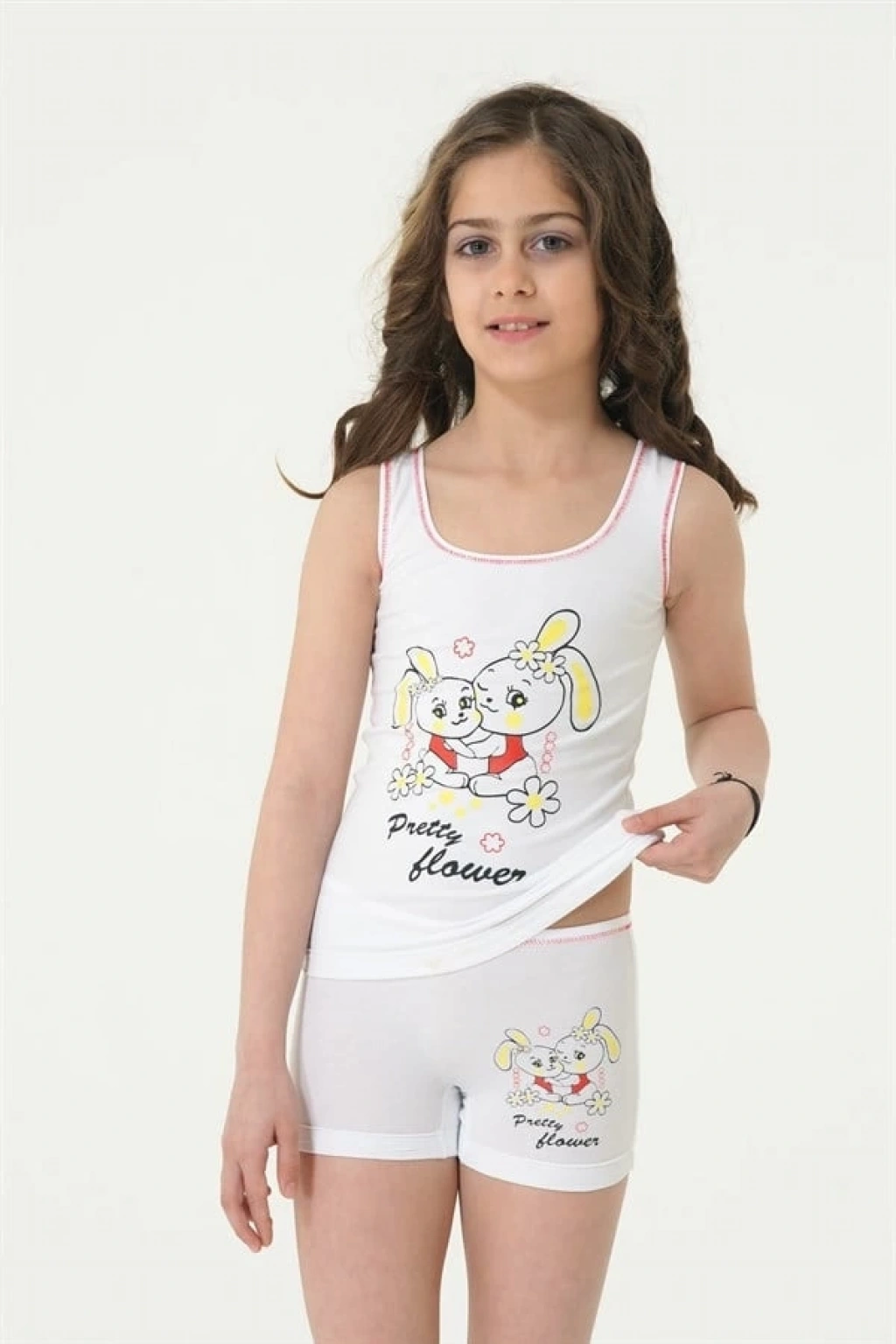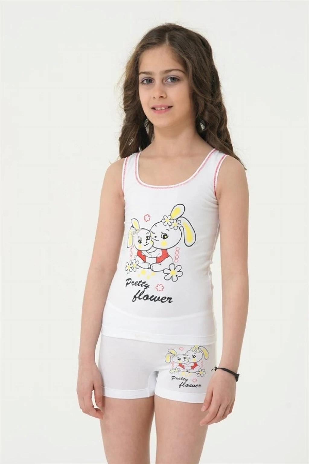 Berrak Kız Tavşan Baskı Geniş Askılı Elastan Takım