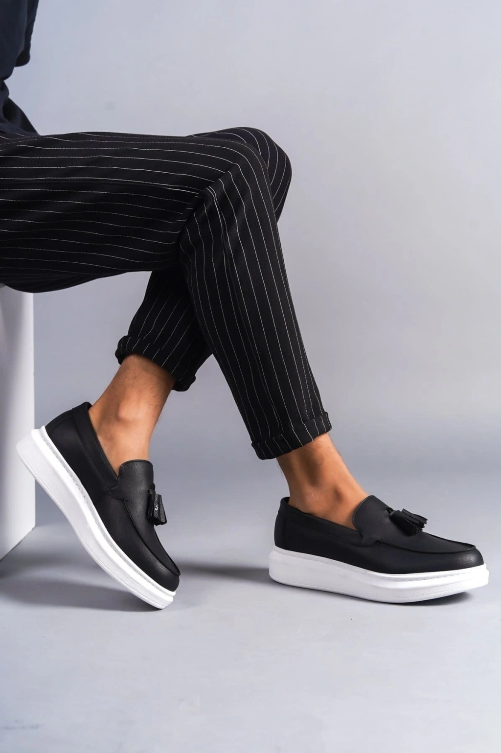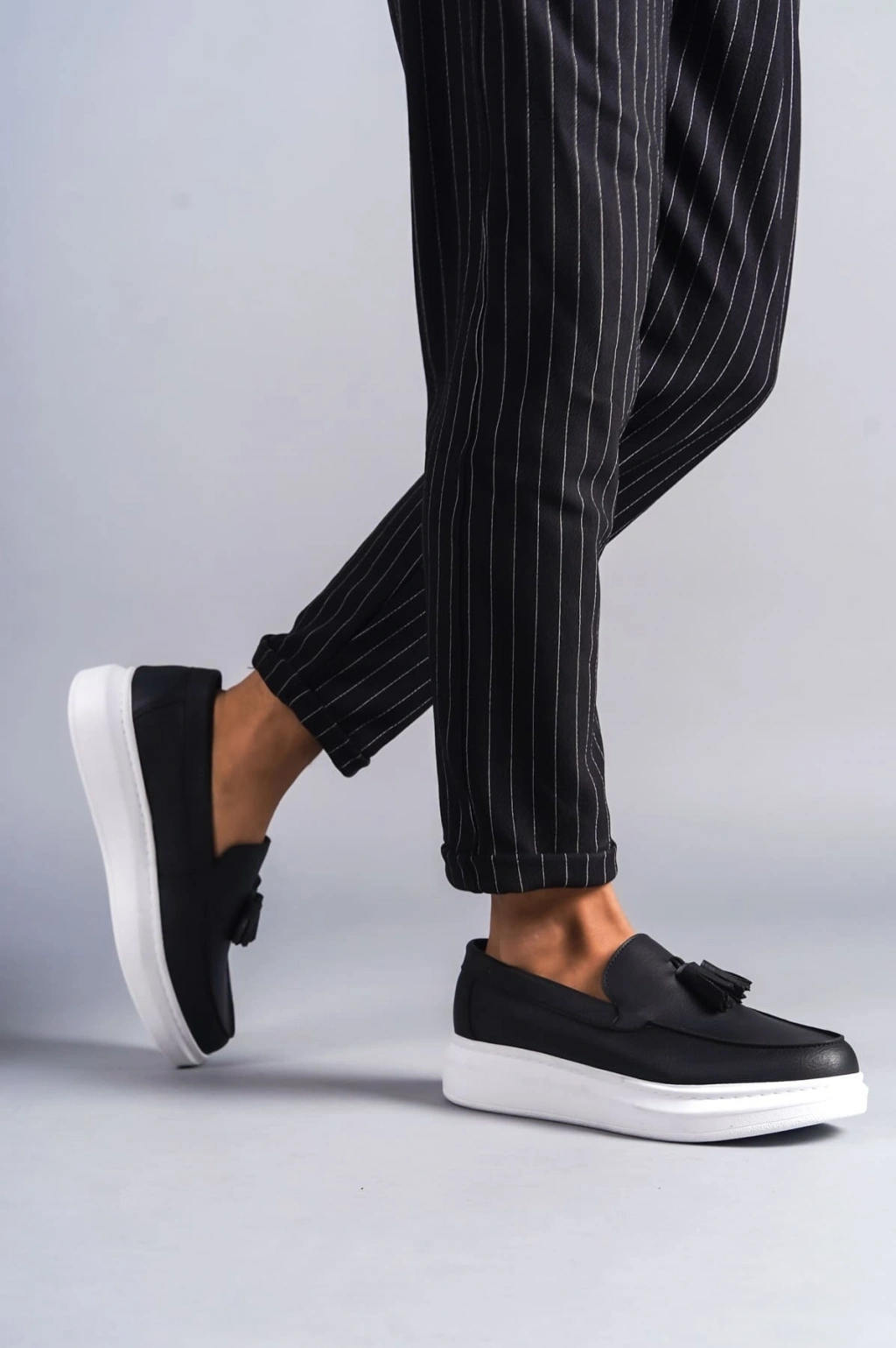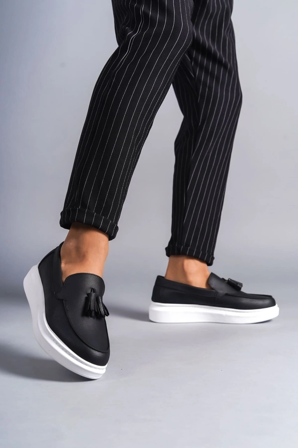 SLW154 Blaze Bağcıksız Püsküllü Cilt Erkek Günlük Spor Klasik Ayakkabı CBT - Siyah
