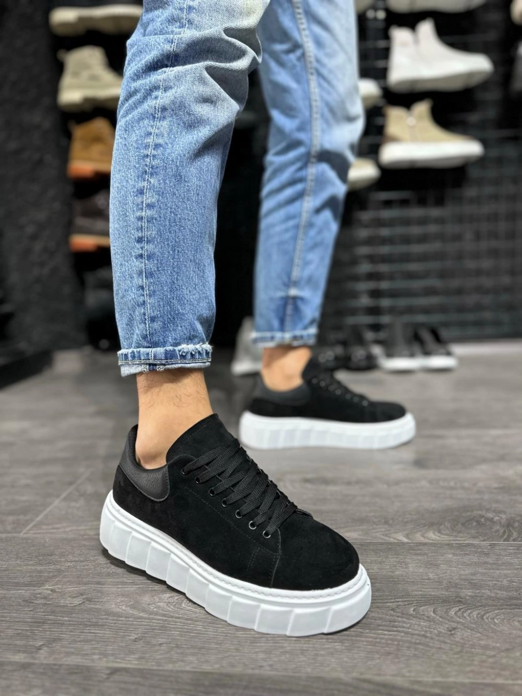 Knack Yüksek Taban Günlük Süet Ayakkabı 144 Siyah (Beyaz Taban)