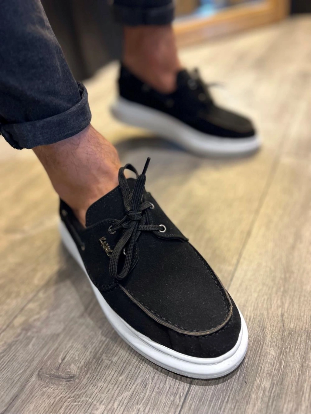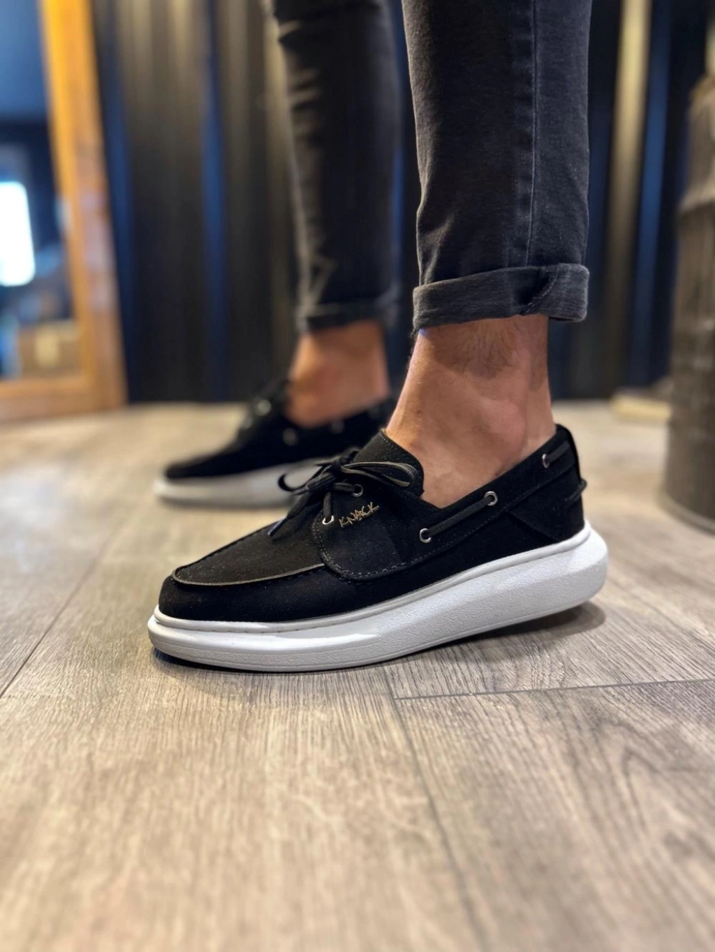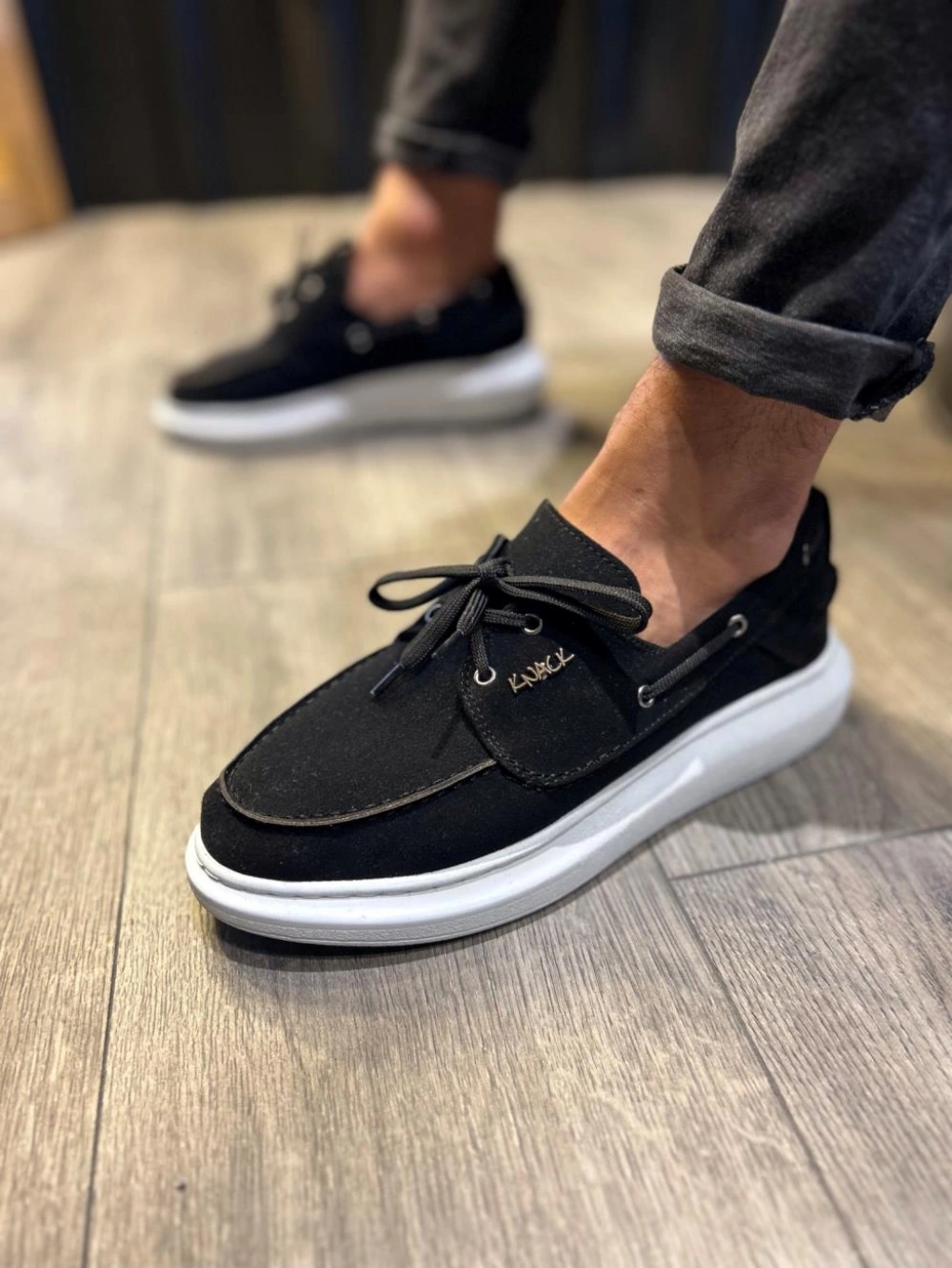 Knack Yüksek Taban Mevsimlik Süet Ayakkabı 009 Siyah (Beyaz Taban)