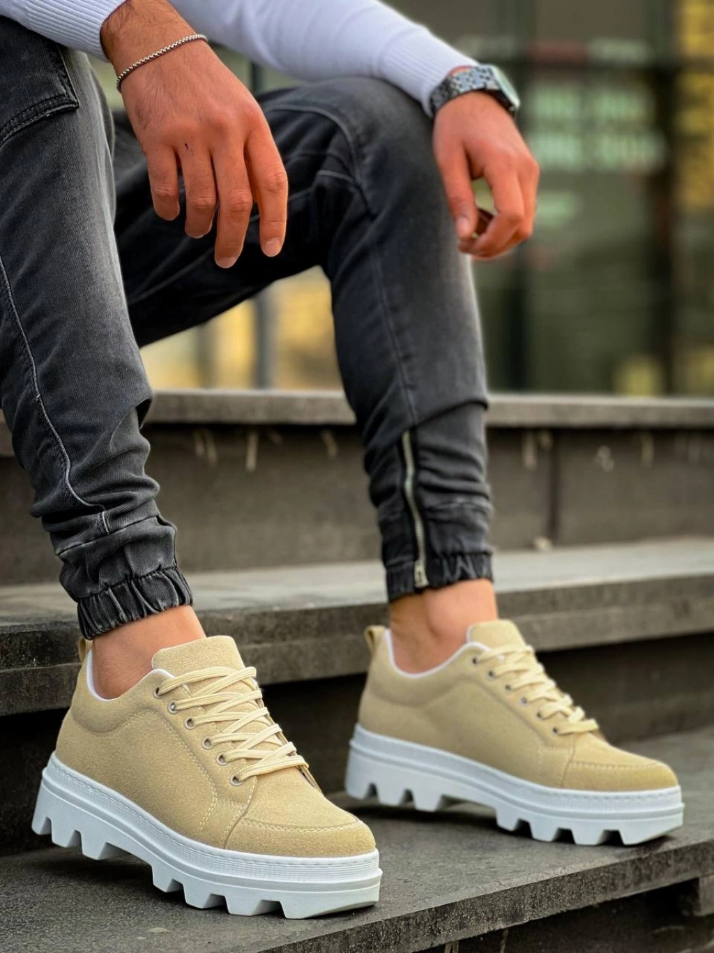 KB-056 Kuback Bej Süet Beyaz Yüksek Taban Günlük Spor Ayakkabı
