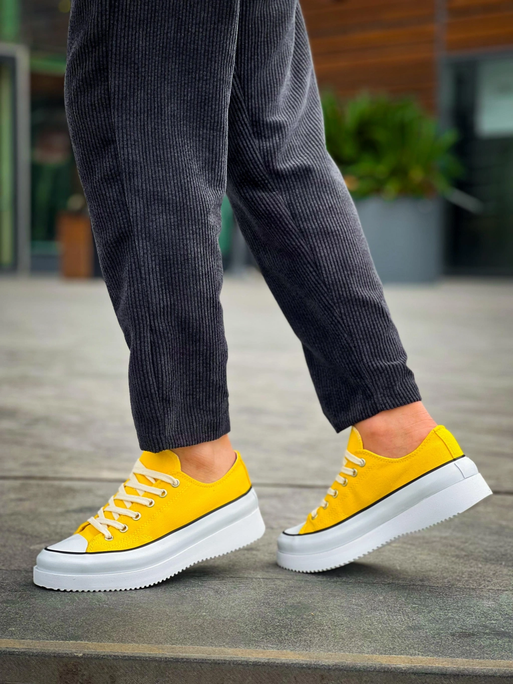 KB-CX-3 Kuback Kısa Sarı Keten Beyaz Yüksek Taban Spor Ayakkabı