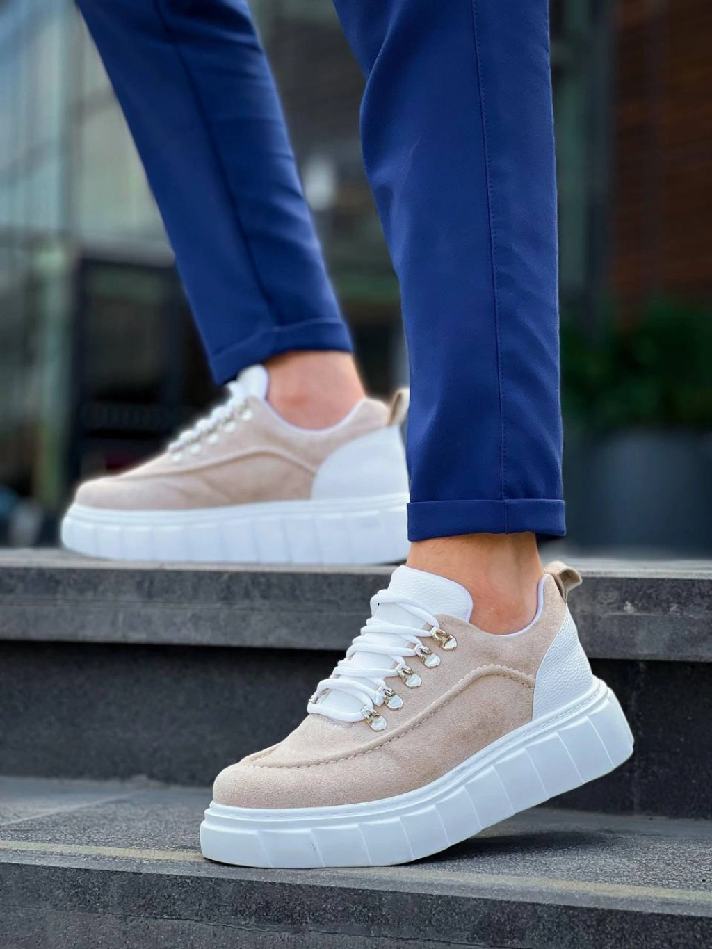 KB-X10 Kuback Bej Süet Beyaz Yüksek Taban Günlük Spor Ayakkabı