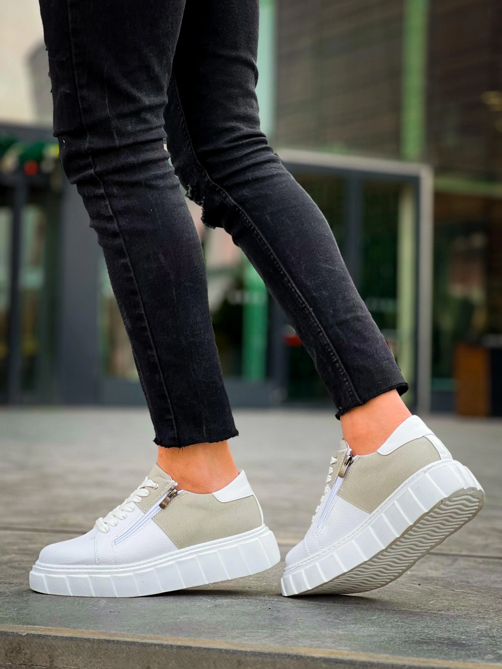 KB-X155 Kuback Beyaz Cilt Gri Süet Detaylı Beyaz Yüksek Taban Günlük Spor Ayakkabı