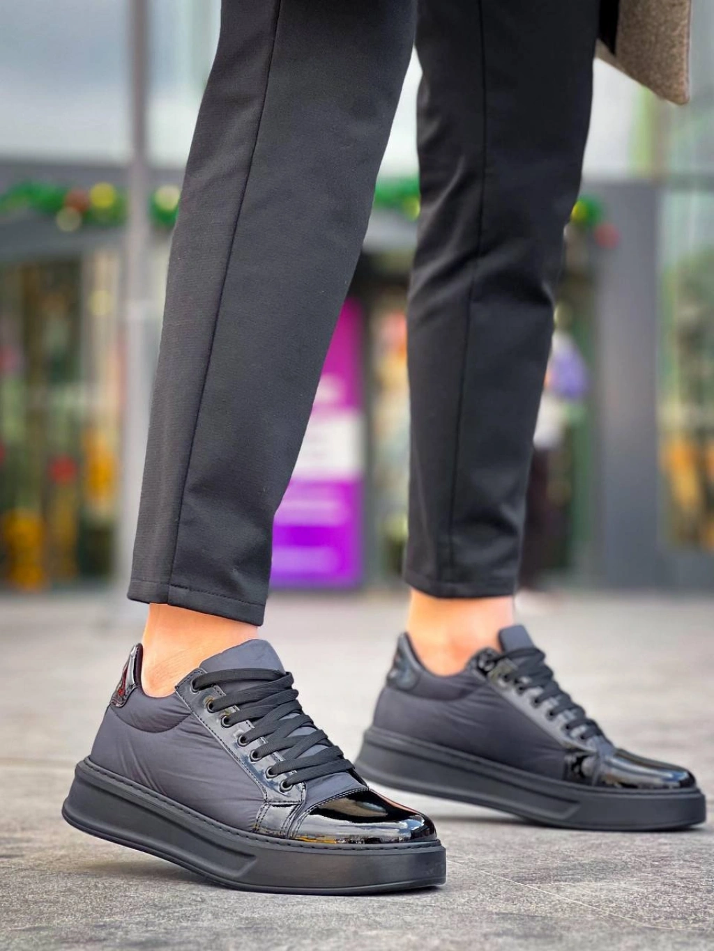 KB-X46 Kuback Siyah Rugan Yüksek Siyah Taban Günlük Spor Ayakkabı