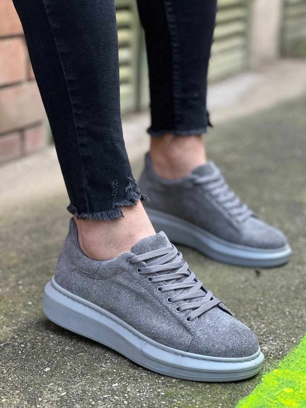 KB-X500 Kuback Gri Süet Yüksek Taban Bağcıklı Günlük Erkek Ayakkabı