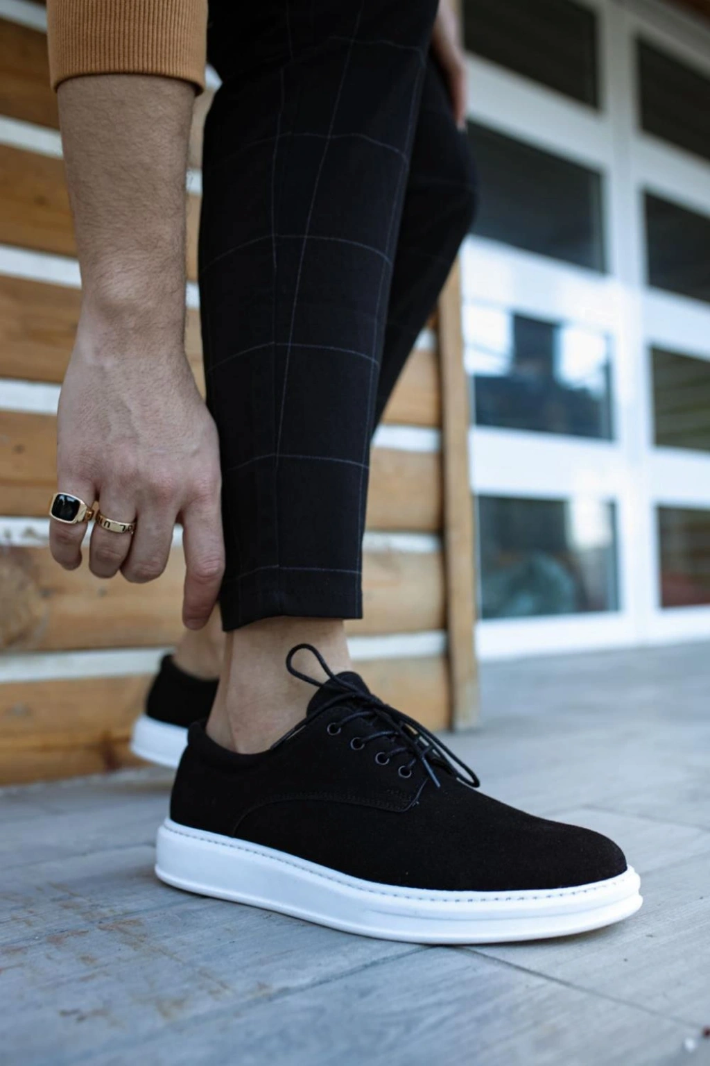 Knack Klasik Erkek Ayakkabı 001 Siyah Süet (Beyaz Taban)