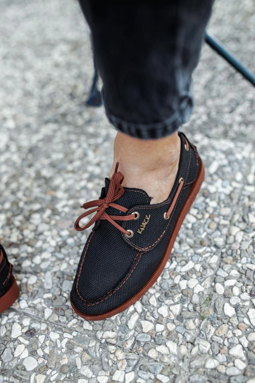 Knack Mevsimlik Keten Ayakkabı 008 Siyah (Taba Taban)