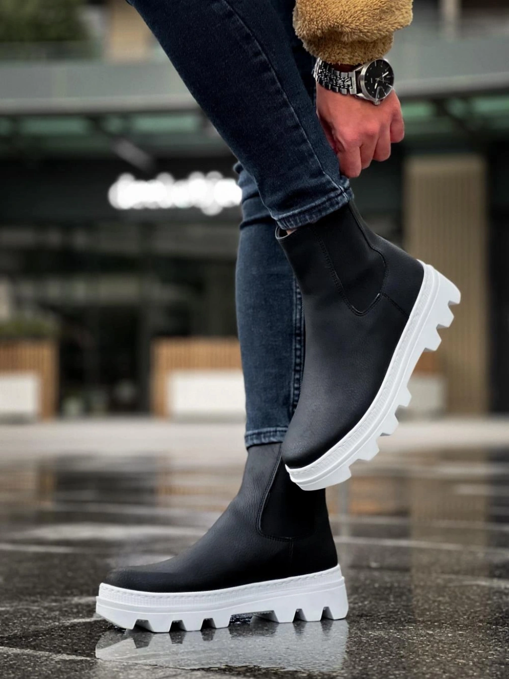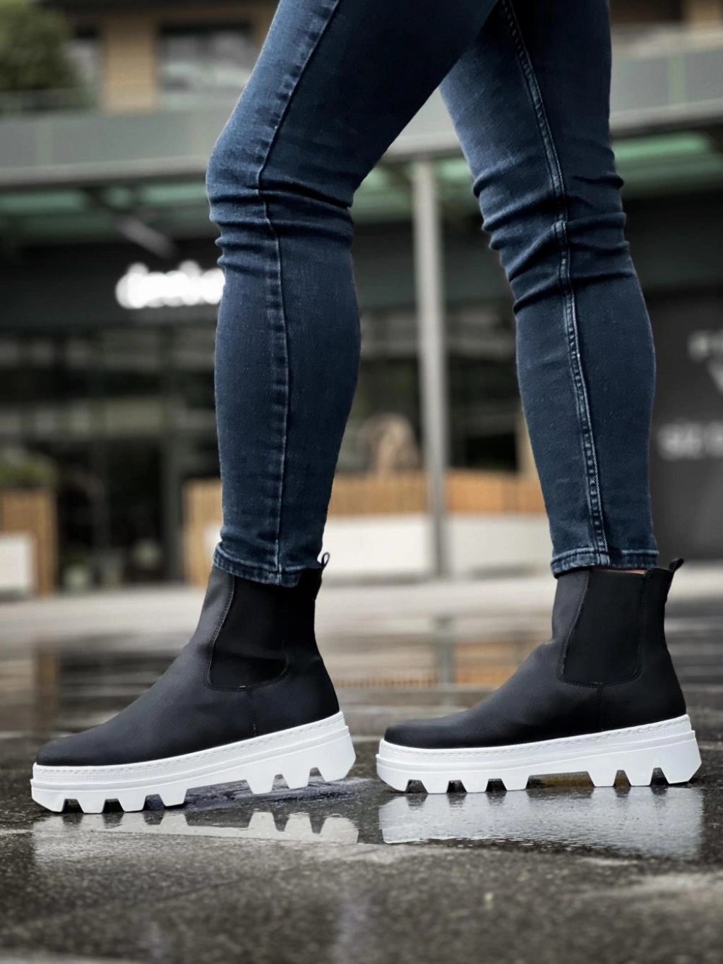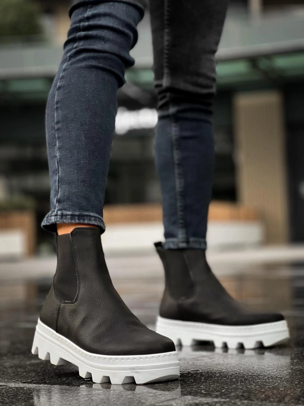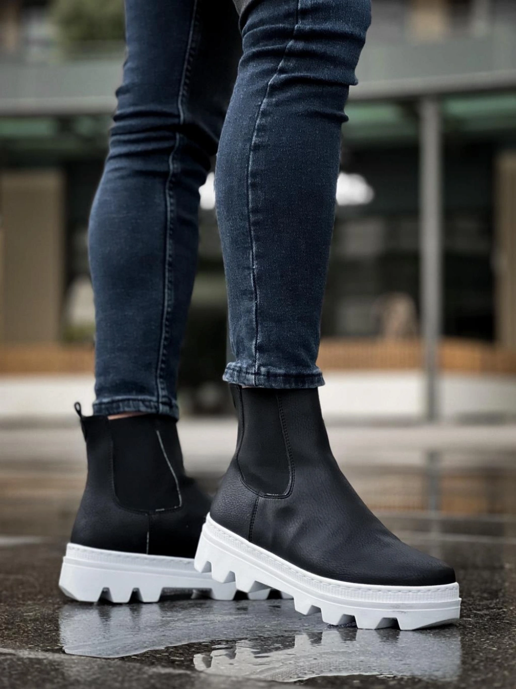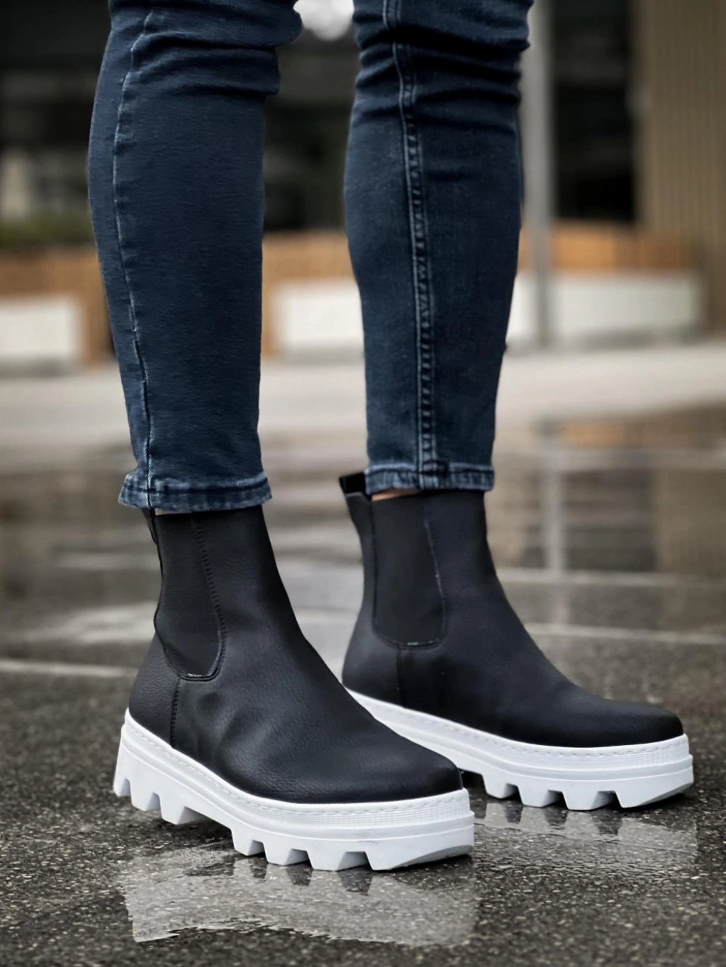 Knack Yüksek Taban Chelsea Bot 113 Siyah (Beyaz Taban)
