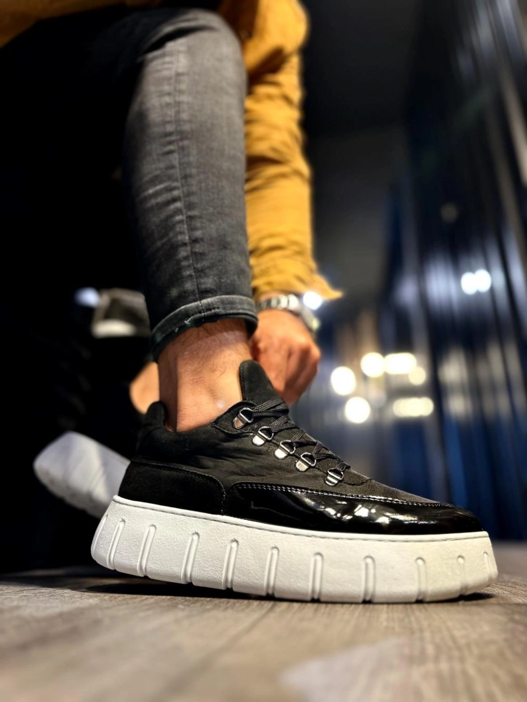 Knack Yüksek Taban Günlük Ayakkabı 600 Siyah (Beyaz Taban)
