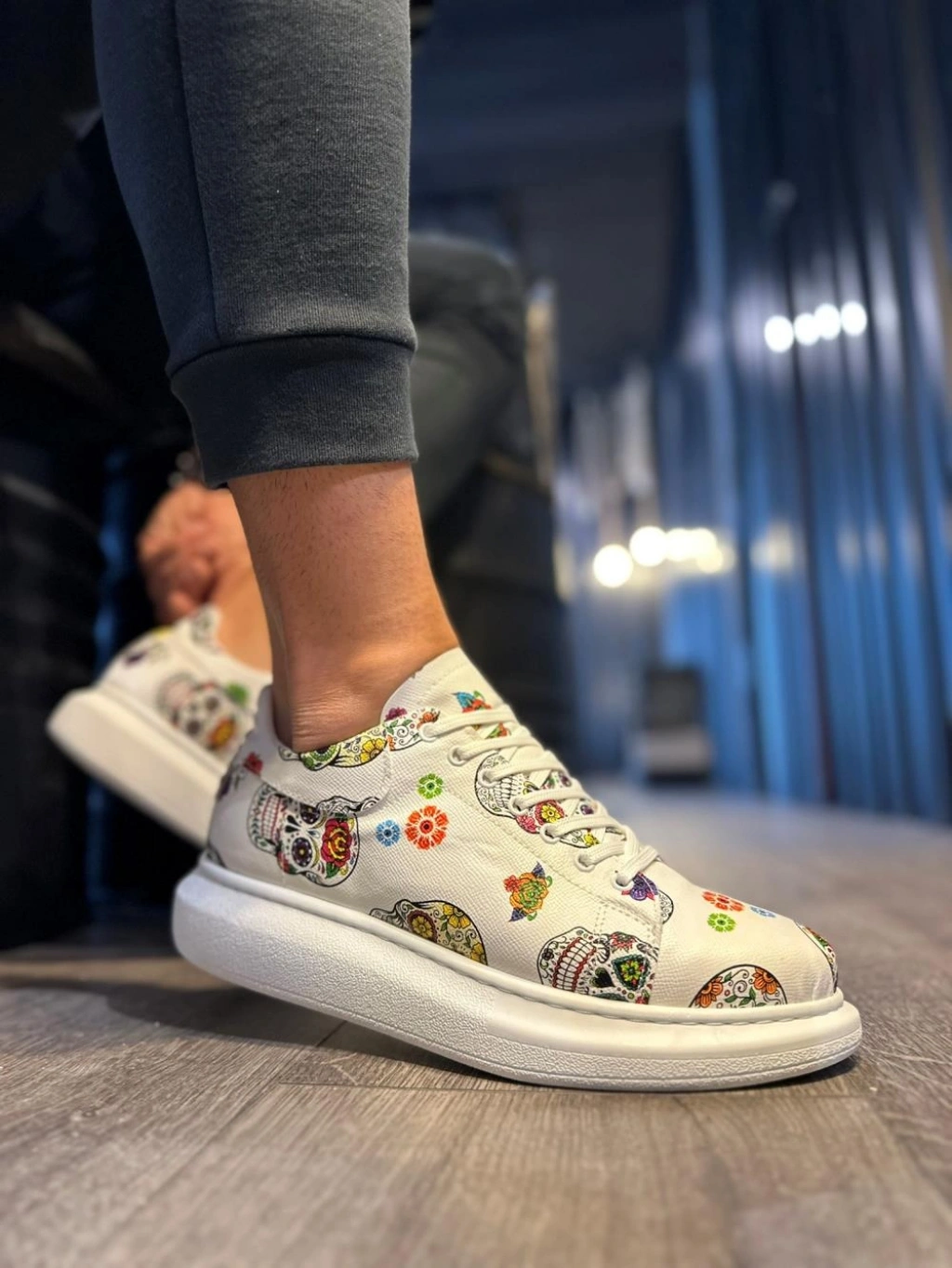 Knack Yüksek Taban Renkli Baskılı Günlük Ayakkabı 046 Beyaz Kurukafa