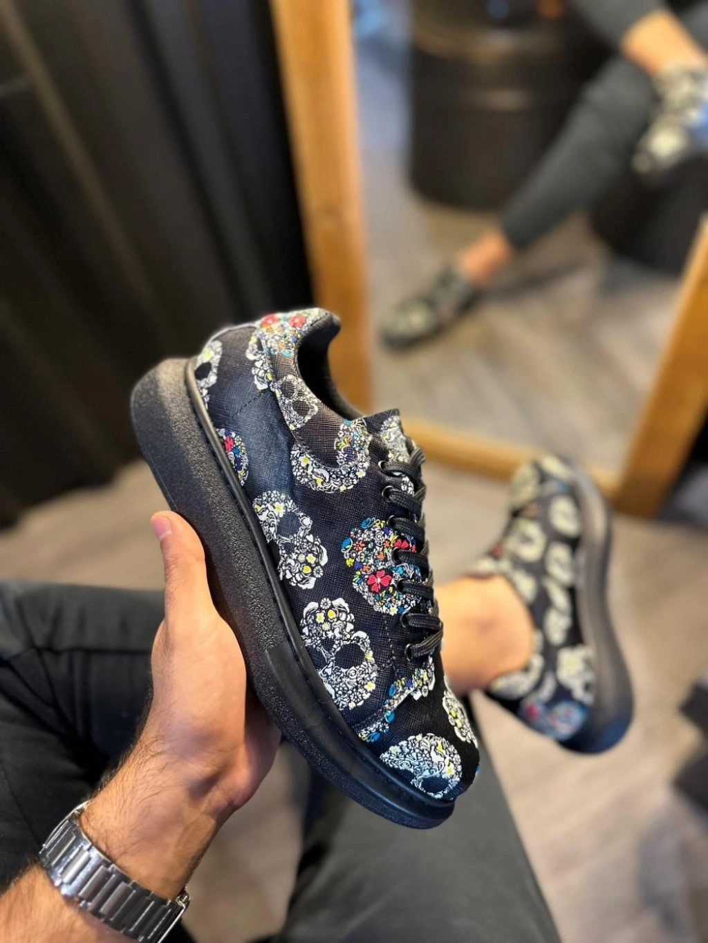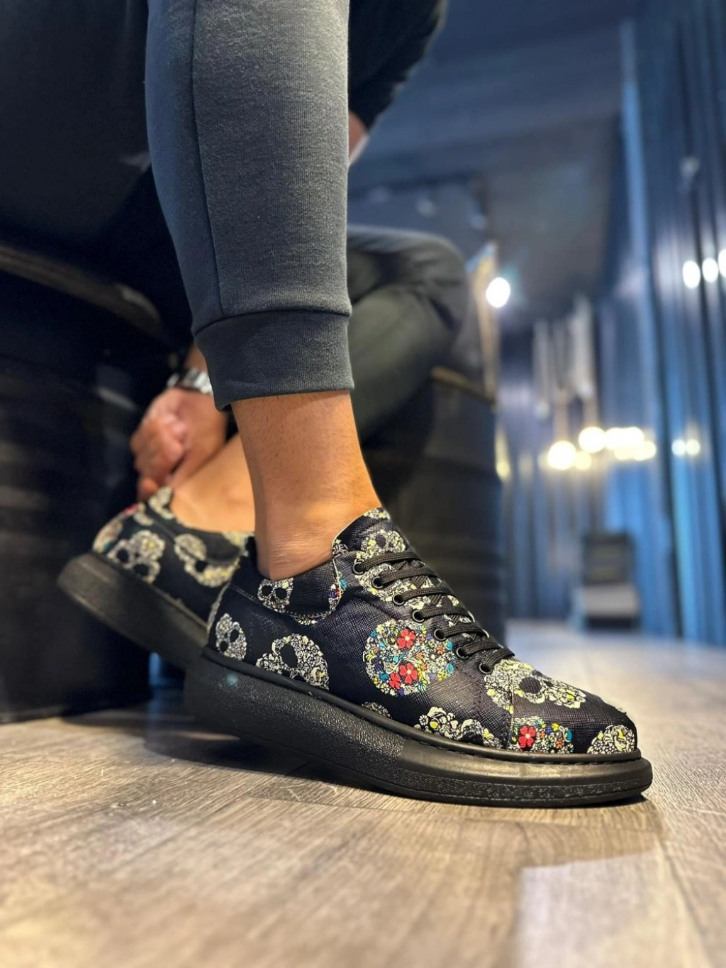 Knack Yüksek Taban Renkli Baskılı Günlük Ayakkabı 046 Siyah Kurukafa