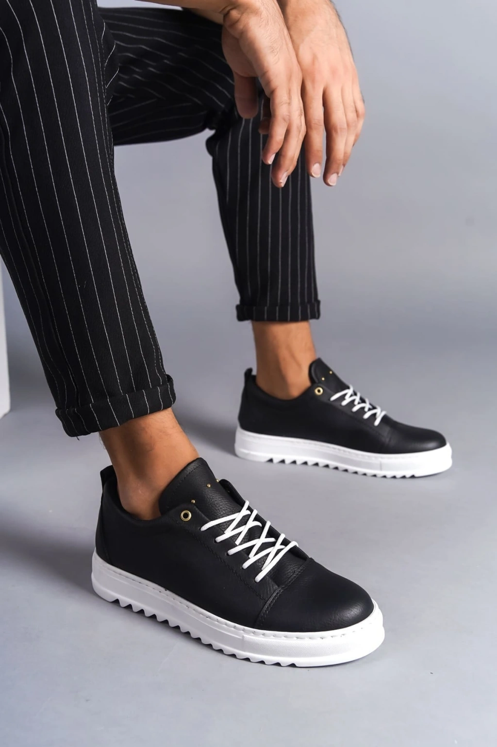 SLW152 Cool Bağcıklı Cilt Erkek Günlük Spor Klasik Ayakkabı CBT - Siyah