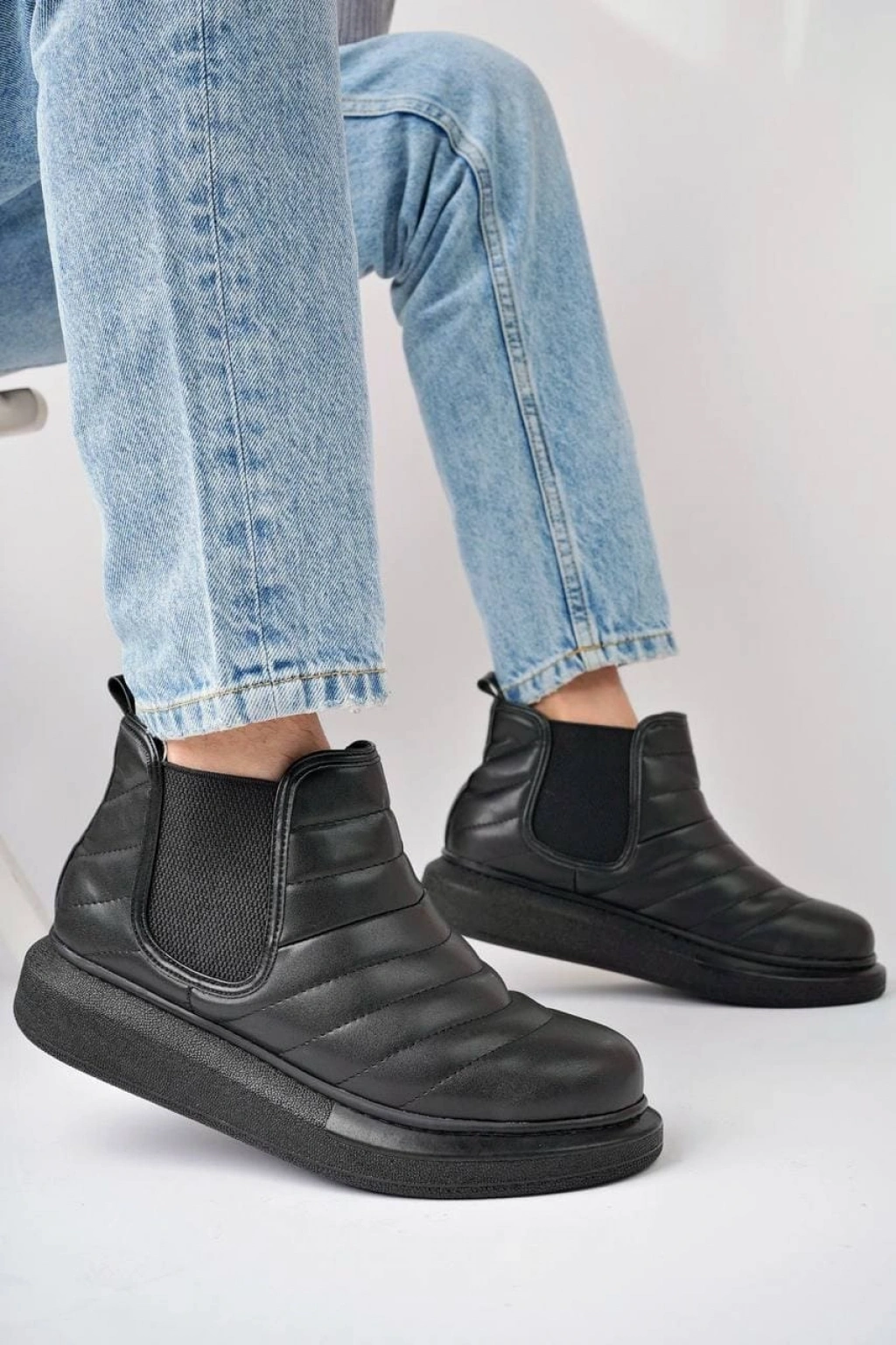 SLW205 Boston Bağcıksız Cilt Erkek Spor Bot ST - Siyah