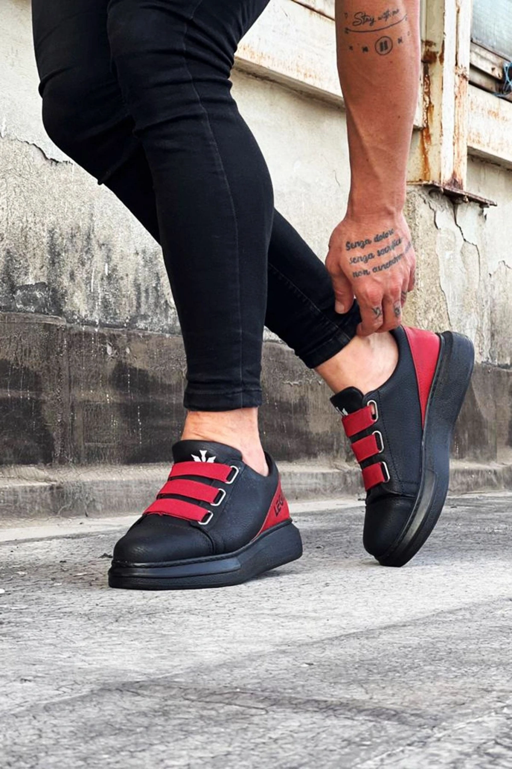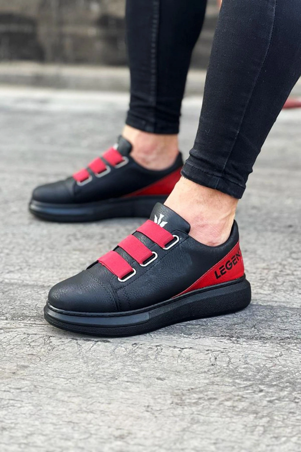 Wagoon WG029 3 Bant Legend Kömür Kırmızı Kalın Taban Casual Erkek Ayakkabı