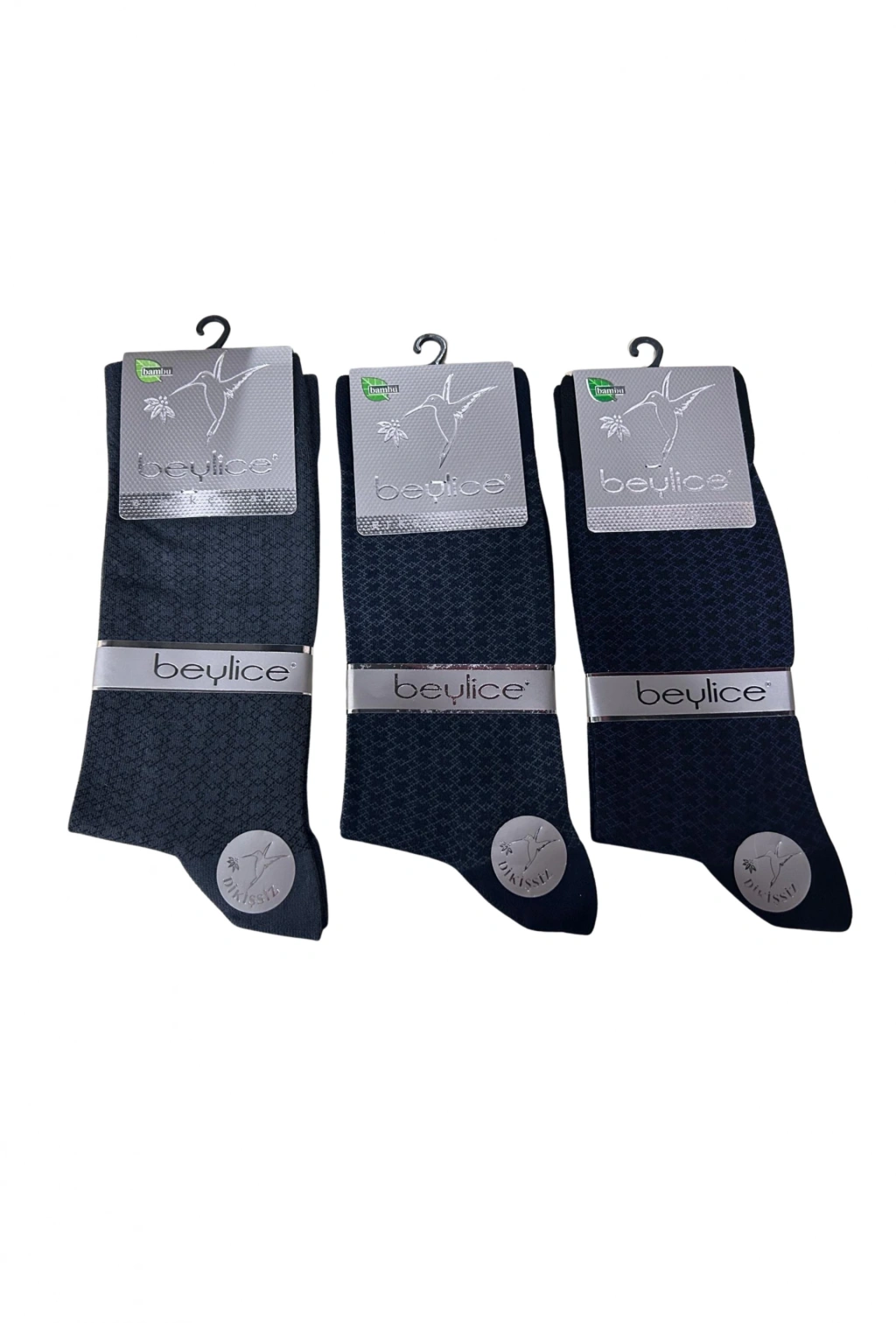 Beylice Desenli Bambu Dikişsiz Erkek Çorabı -Sıkmayan Lastik- Tavşan Kulağı Kavrayan Topuk 12 ADET