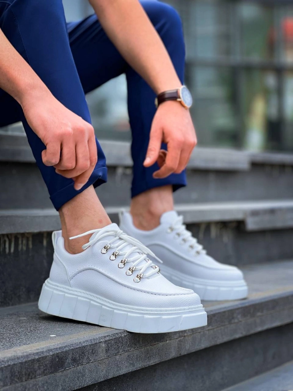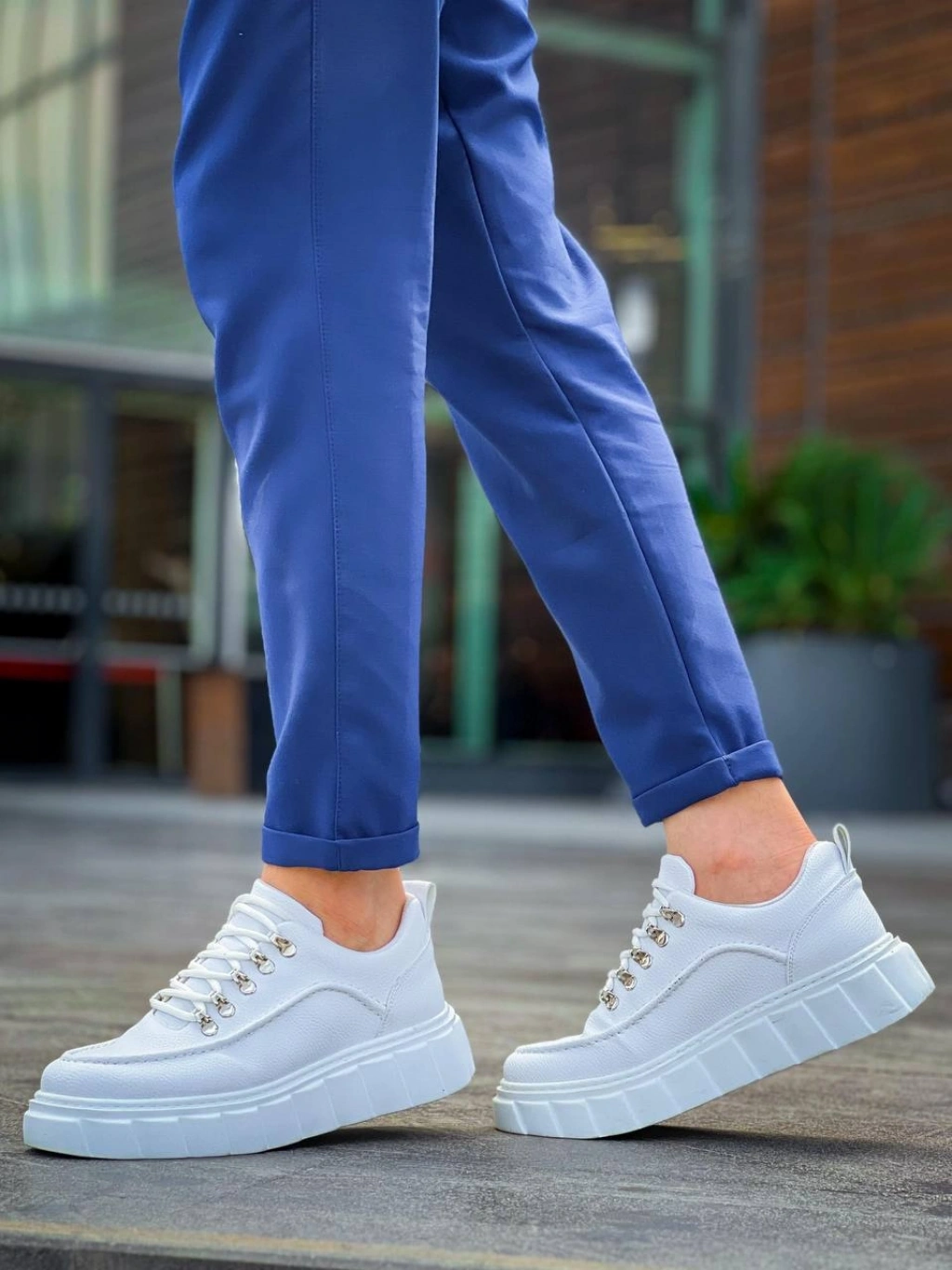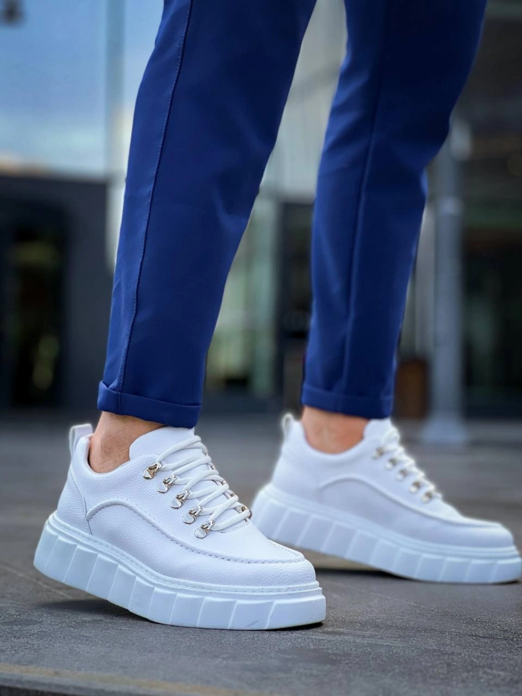 KB-X10 Kuback Beyaz Cilt Beyaz Yüksek Taban Günlük Spor Ayakkabı